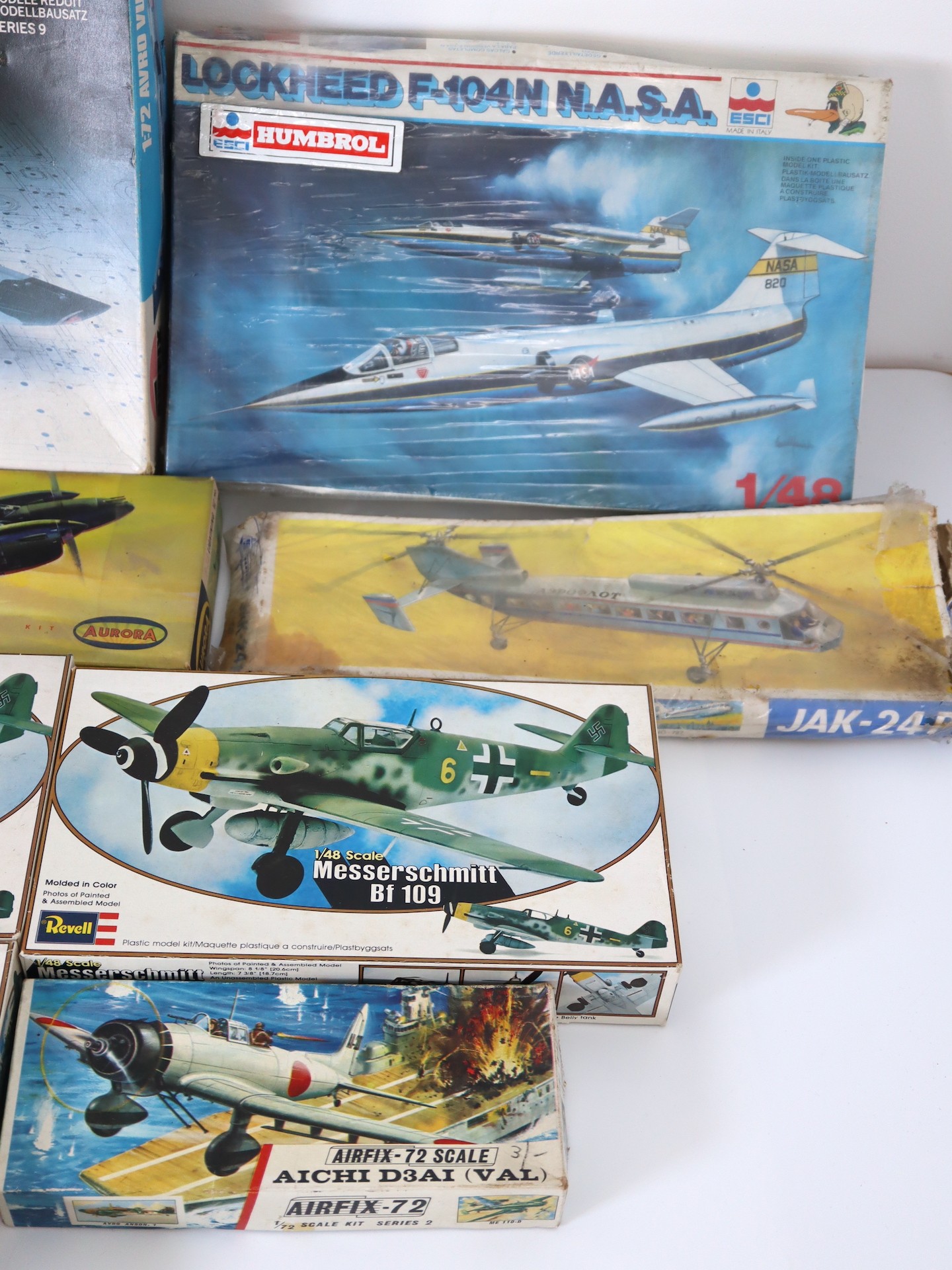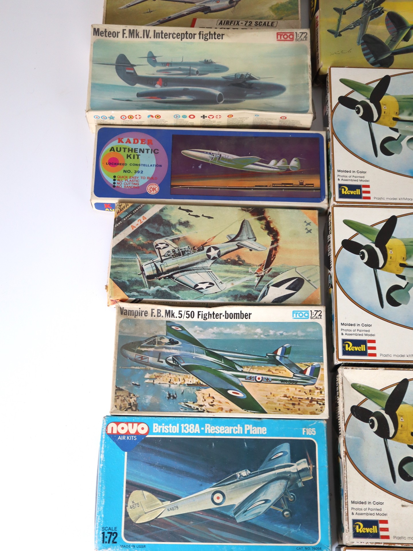 A collection of unused or unopened Plastic Aircraft Model Kits including Revell, Airfix, Frog, Aurora + others