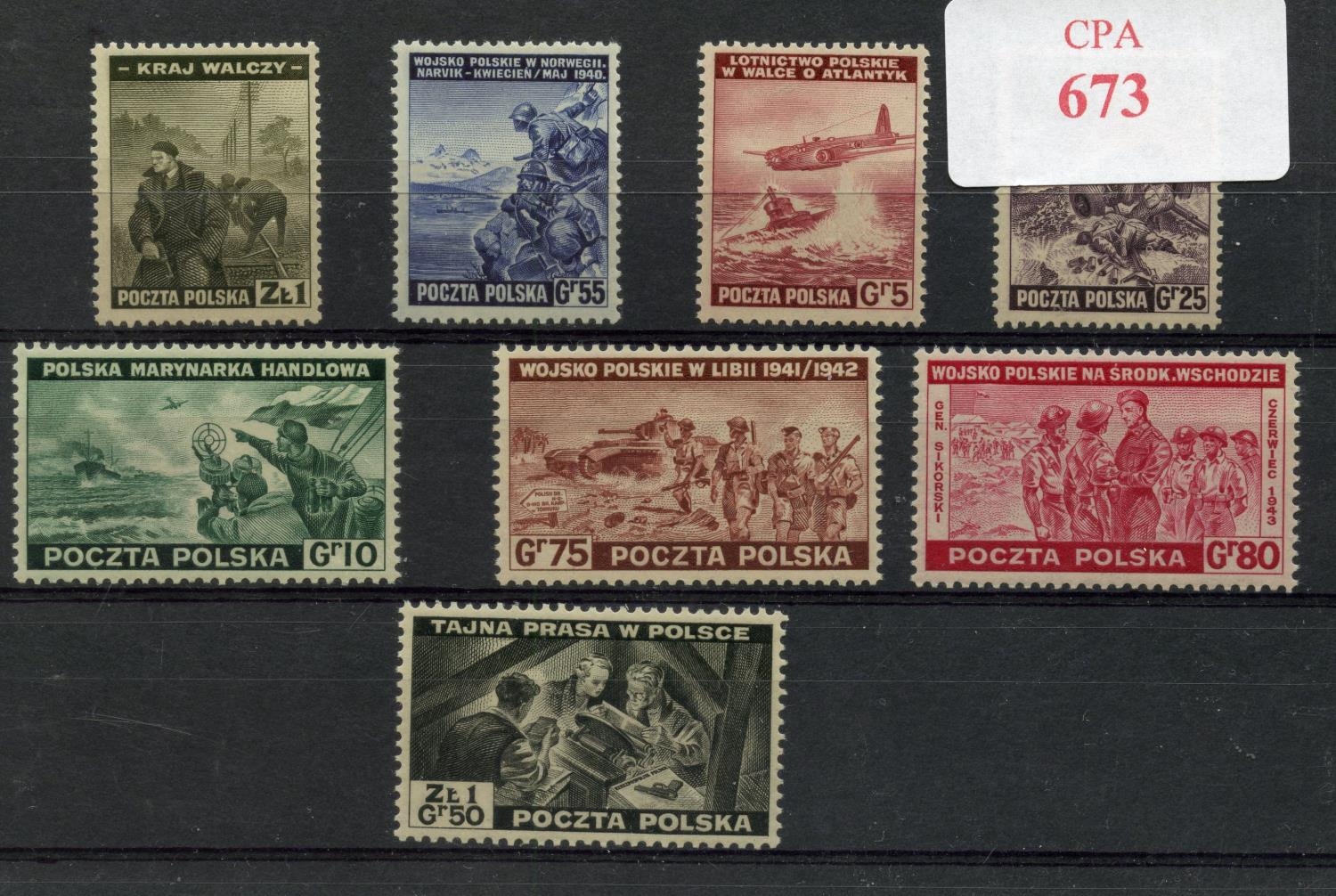 POLAND 1943 5g to 1z50 black set um. SG 486 - 93. Cat £23.