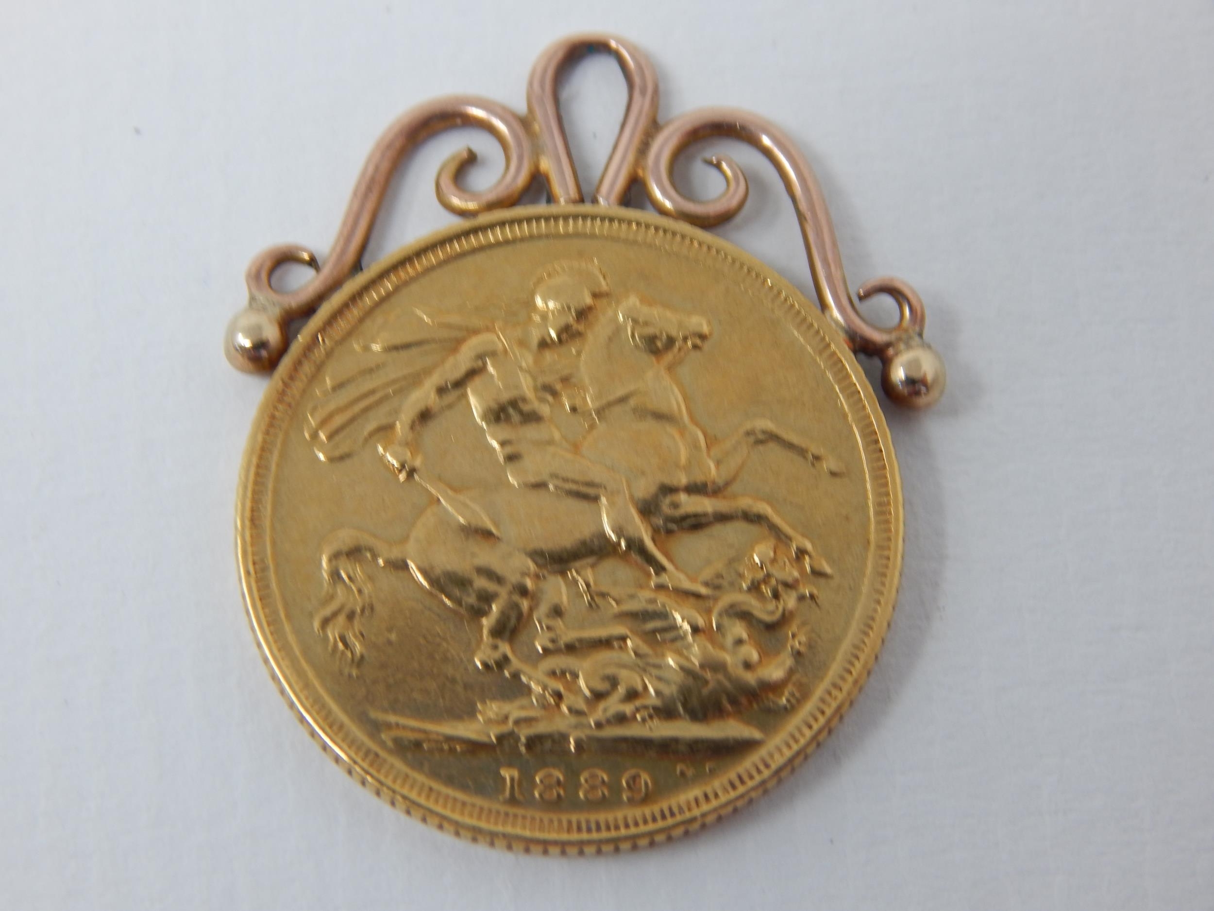 QV Full Gold Sovereign 1889 with Attached Loop: Gross Weight 8.6g