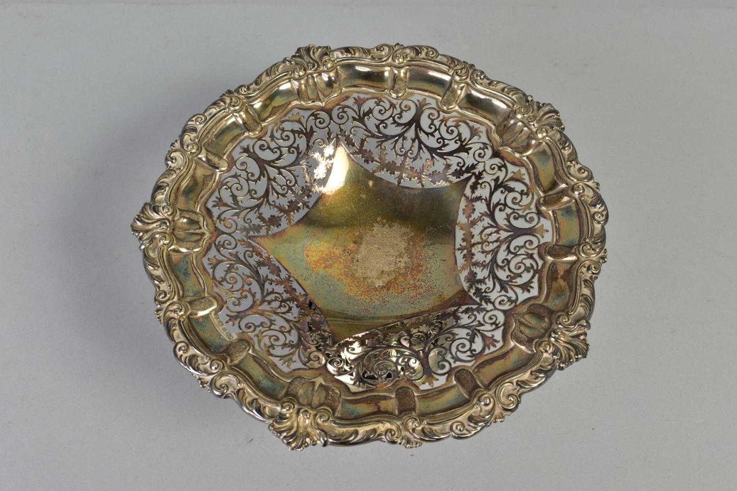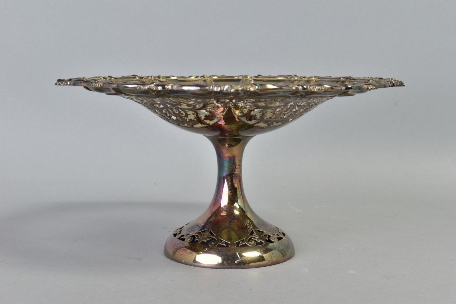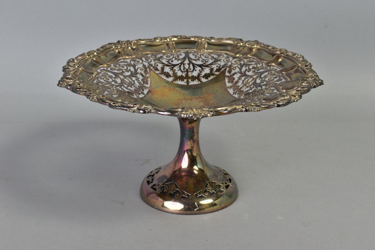 AN EDWARDIAN SILVER COMPORT, foliate cast rim surrounding foliate scroll pierced bowl, on a plain pedestal to a pierced circular foot, maker's mark partially indistinct, (T.W or F.W), Birmingham 1902, approximate gross weight 15.78ozt, 490.8 grams