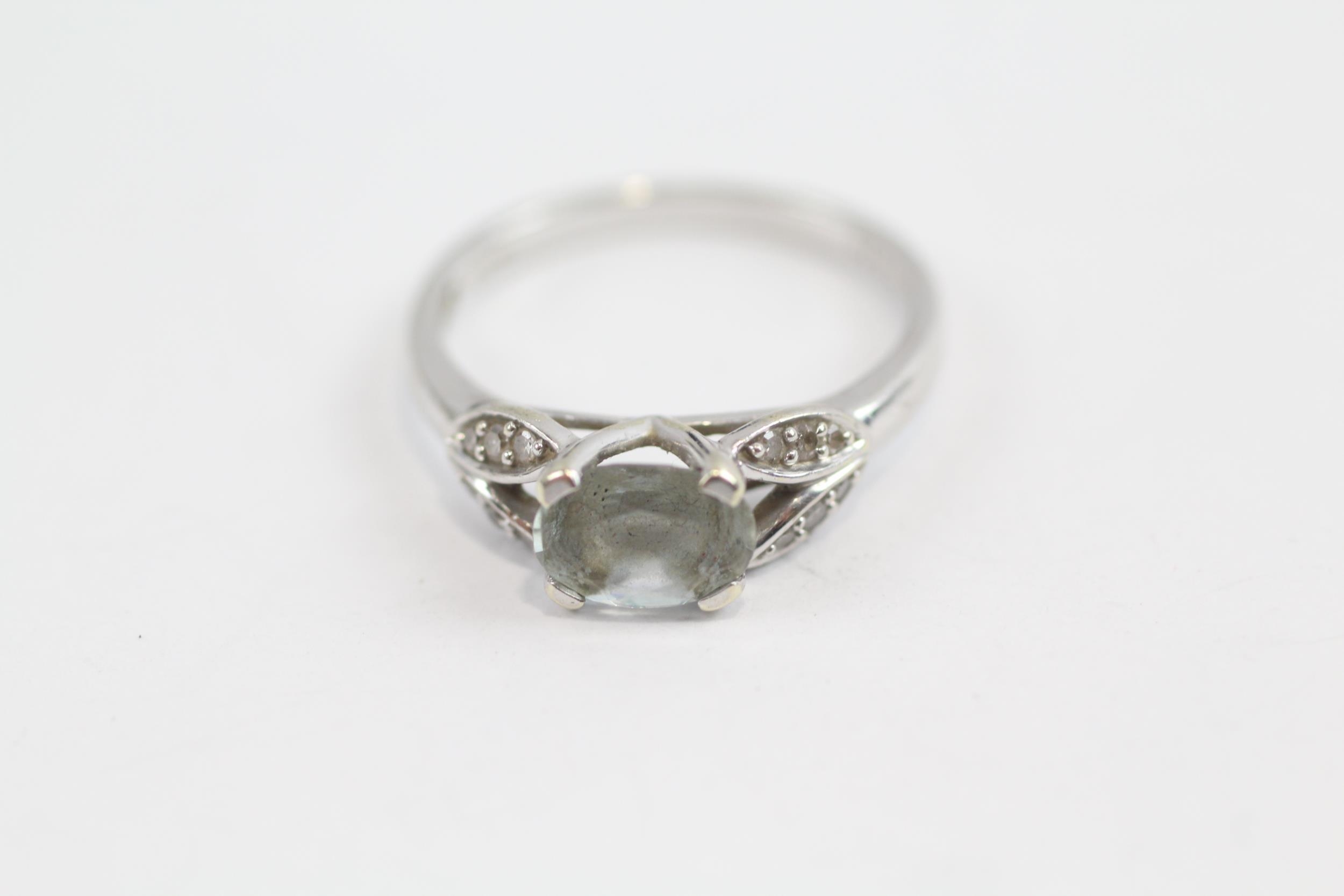 9ct White Gold Aquamarine And Diamond Set Dress Ring (2.5g) Size O 1/2