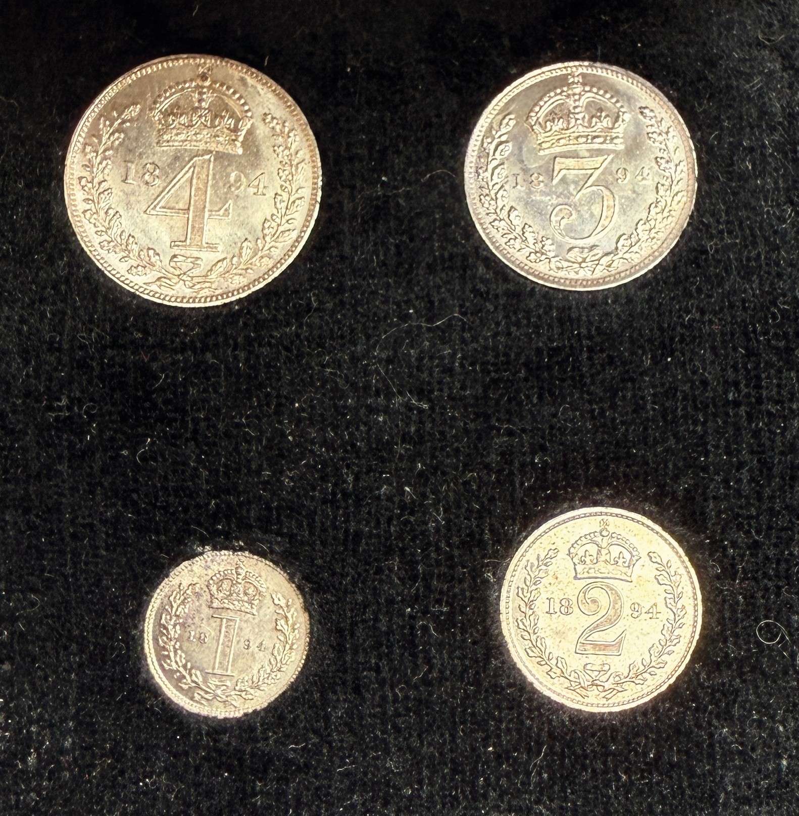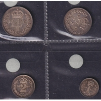 UK QV 1894 complete x4 coin silver Maundy set, comprising 1d, 2d, 3d, 4d, in good condition