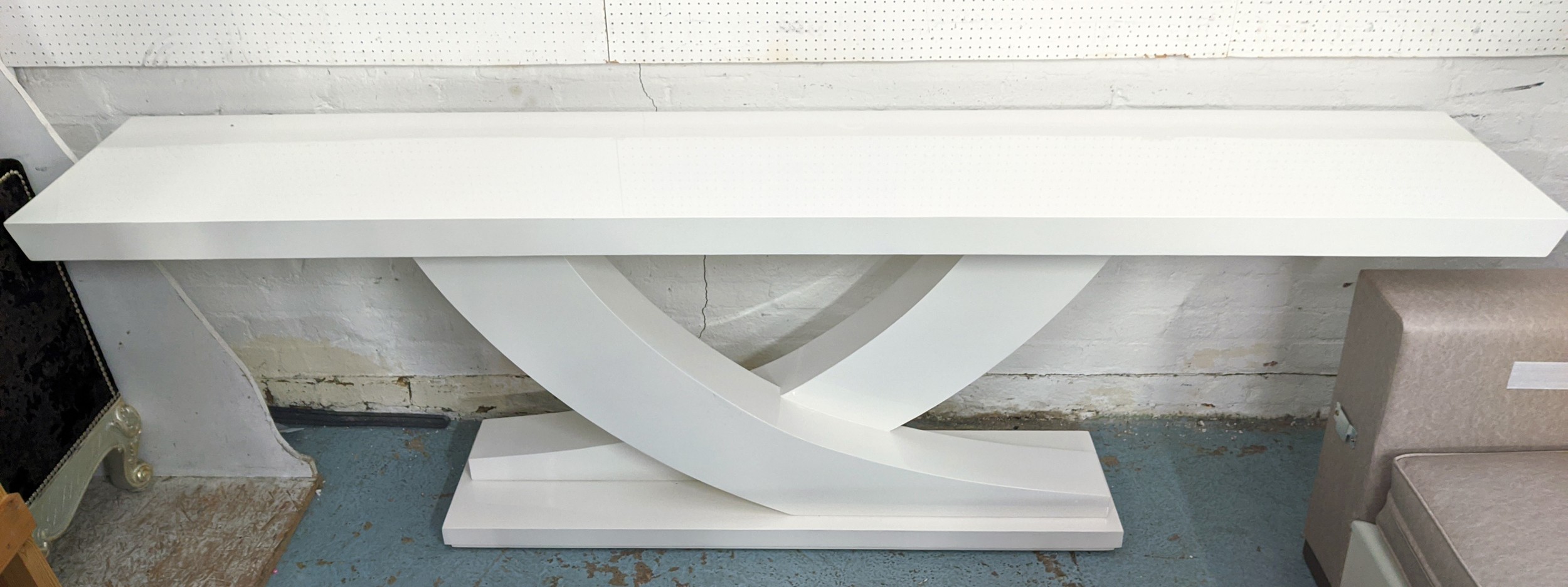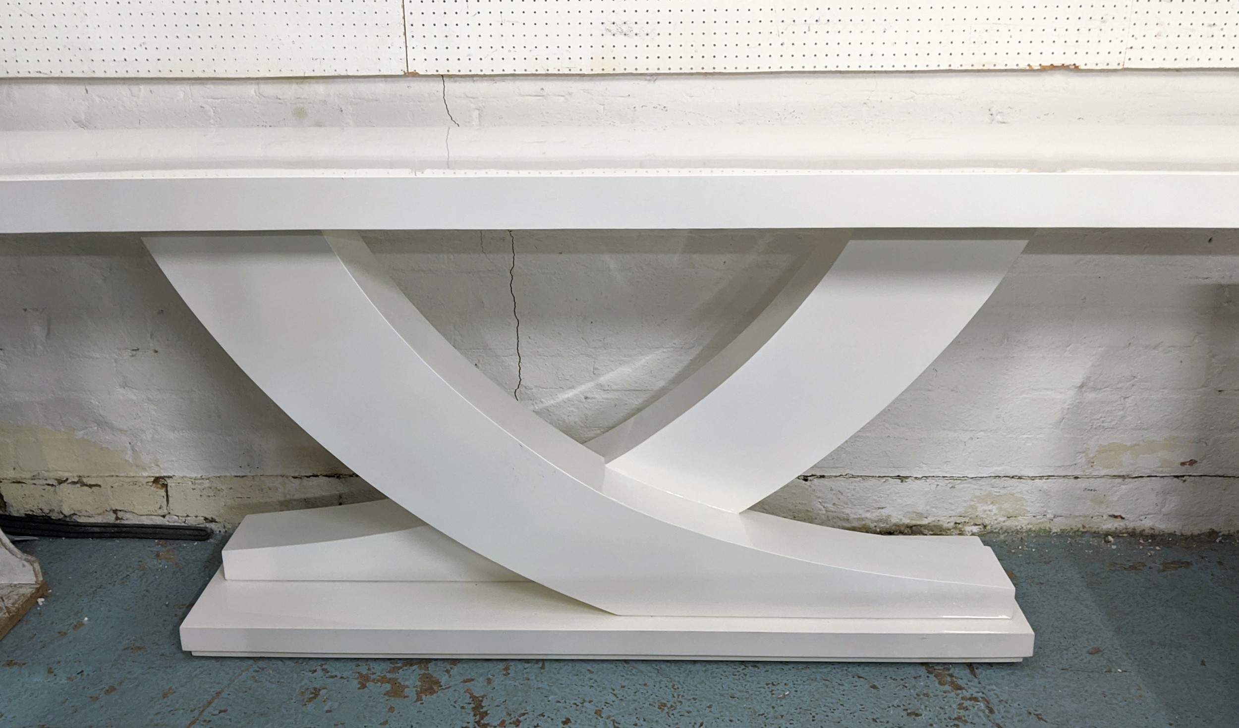 CONSOLE TABLE, contemporary white lacquered design, 260cm x 45.5cm x 81cm.