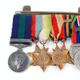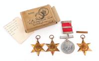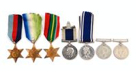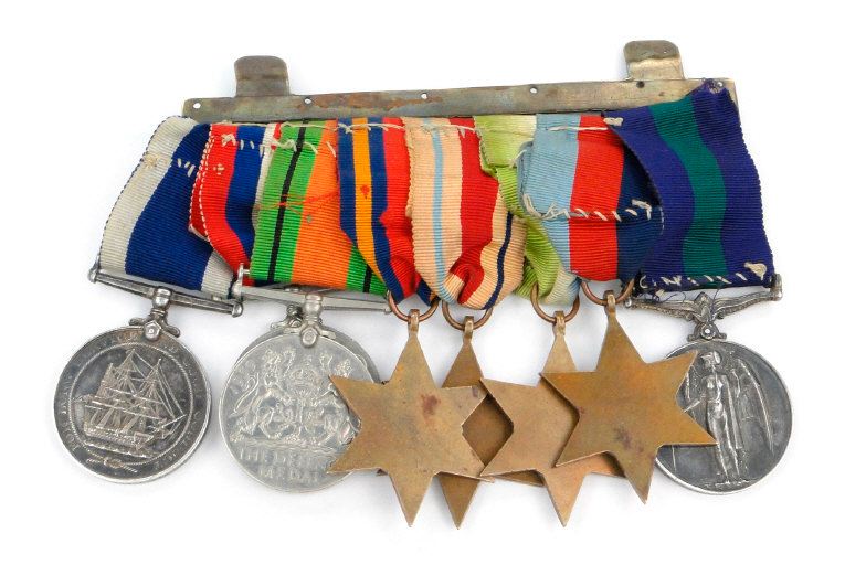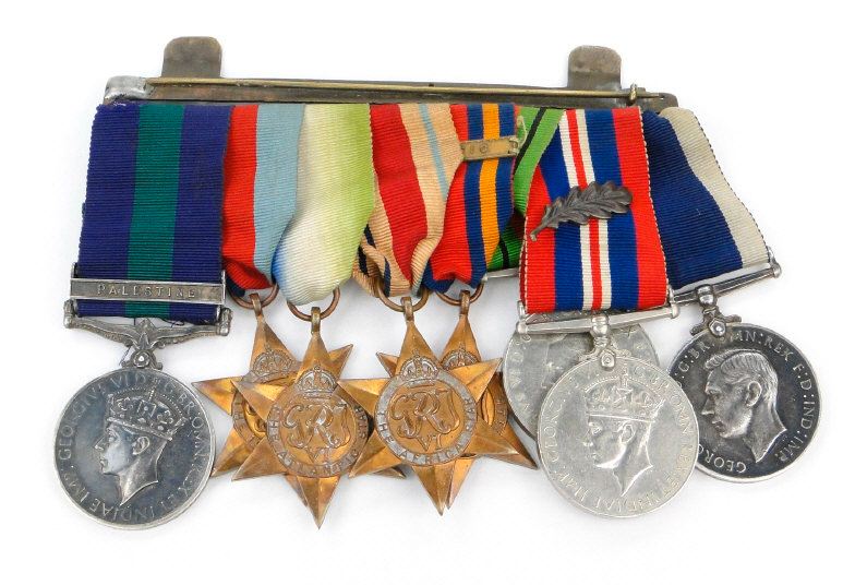 World War II British military medal group comprising 1939-45 War medal, 1939-45 Star, Defence medal, Burma Star, Africa Star, Atlantic Star, GSM with Palestine bar and Naval Long Service and Good Conduct medal, the GSM marked 561122.CPL.J.H.J.FLANAGAN.A.F. to the rim, the Naval medal marked FX.75868 G.H.J.FLANAGAN.A.2.H.M.S.SPARROWHAWK to the rim