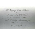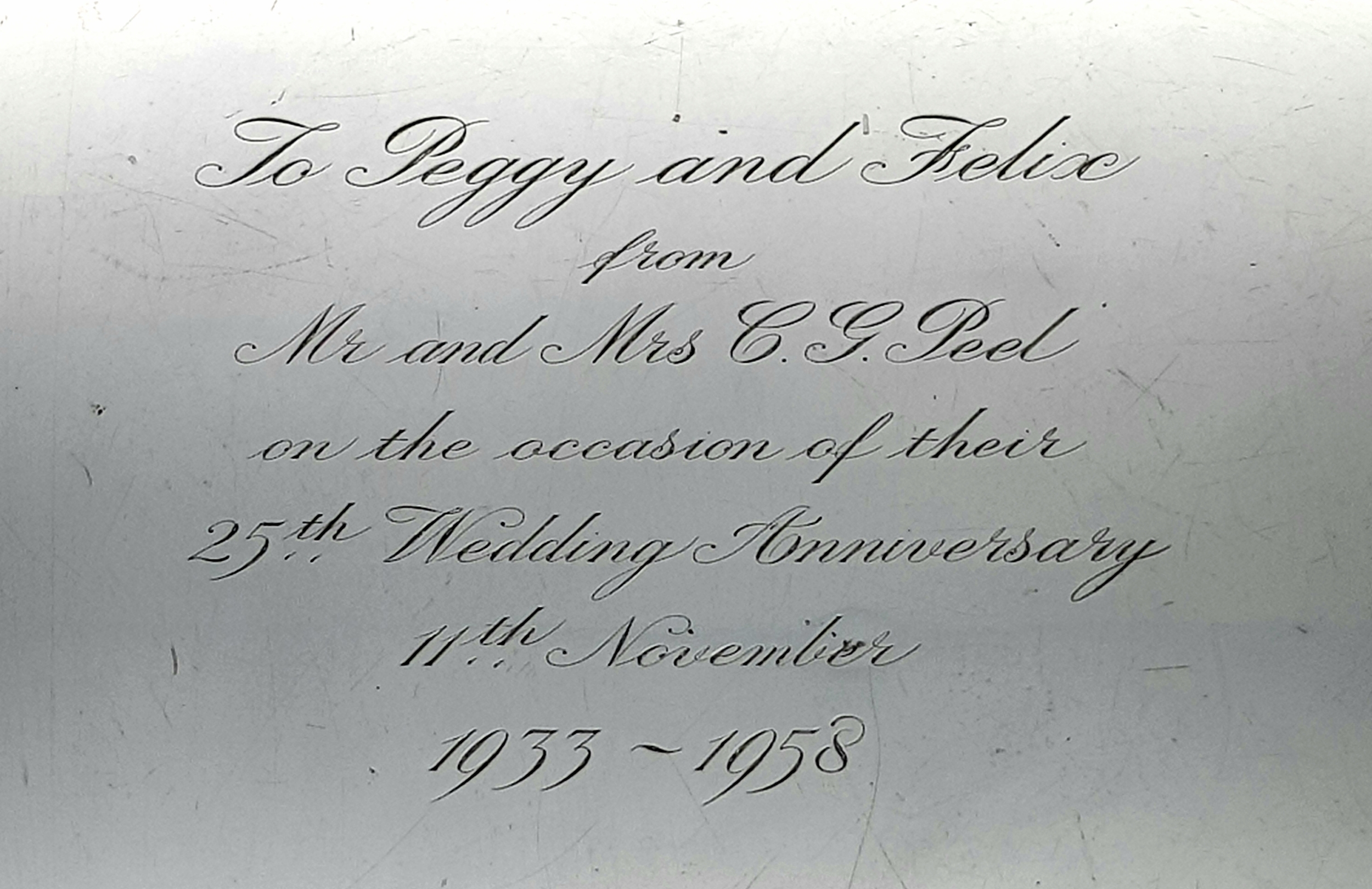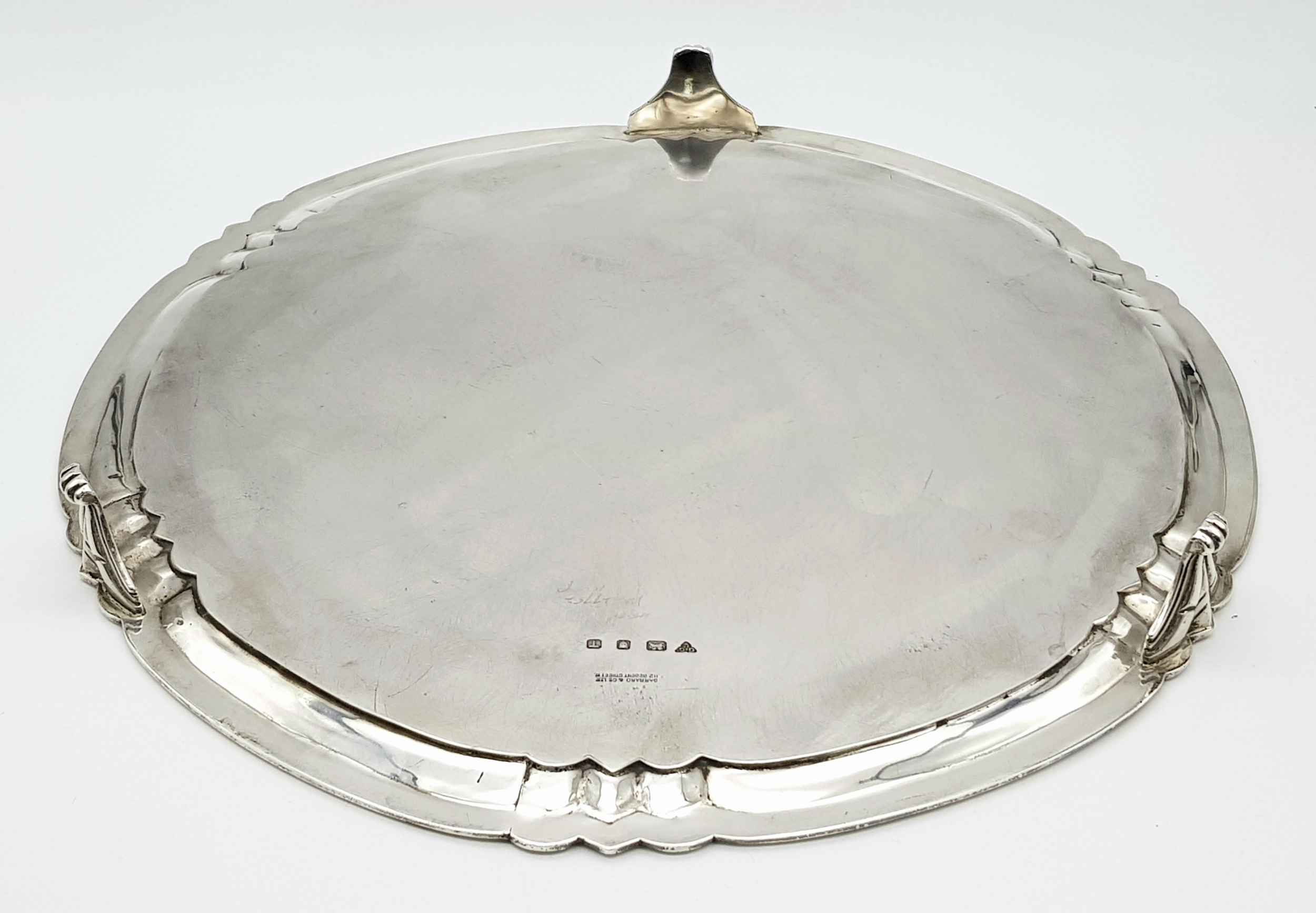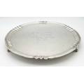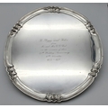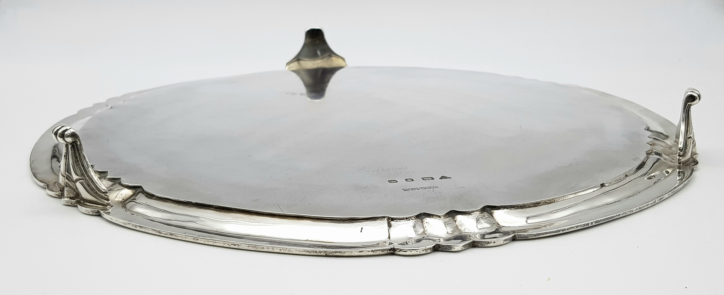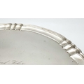 A Vintage Garrard and Co. Sterling Silver Salver. Originally a wedding gift. Hallmarks for London 1954. 1.4 Kilograms. 35cm diameter.