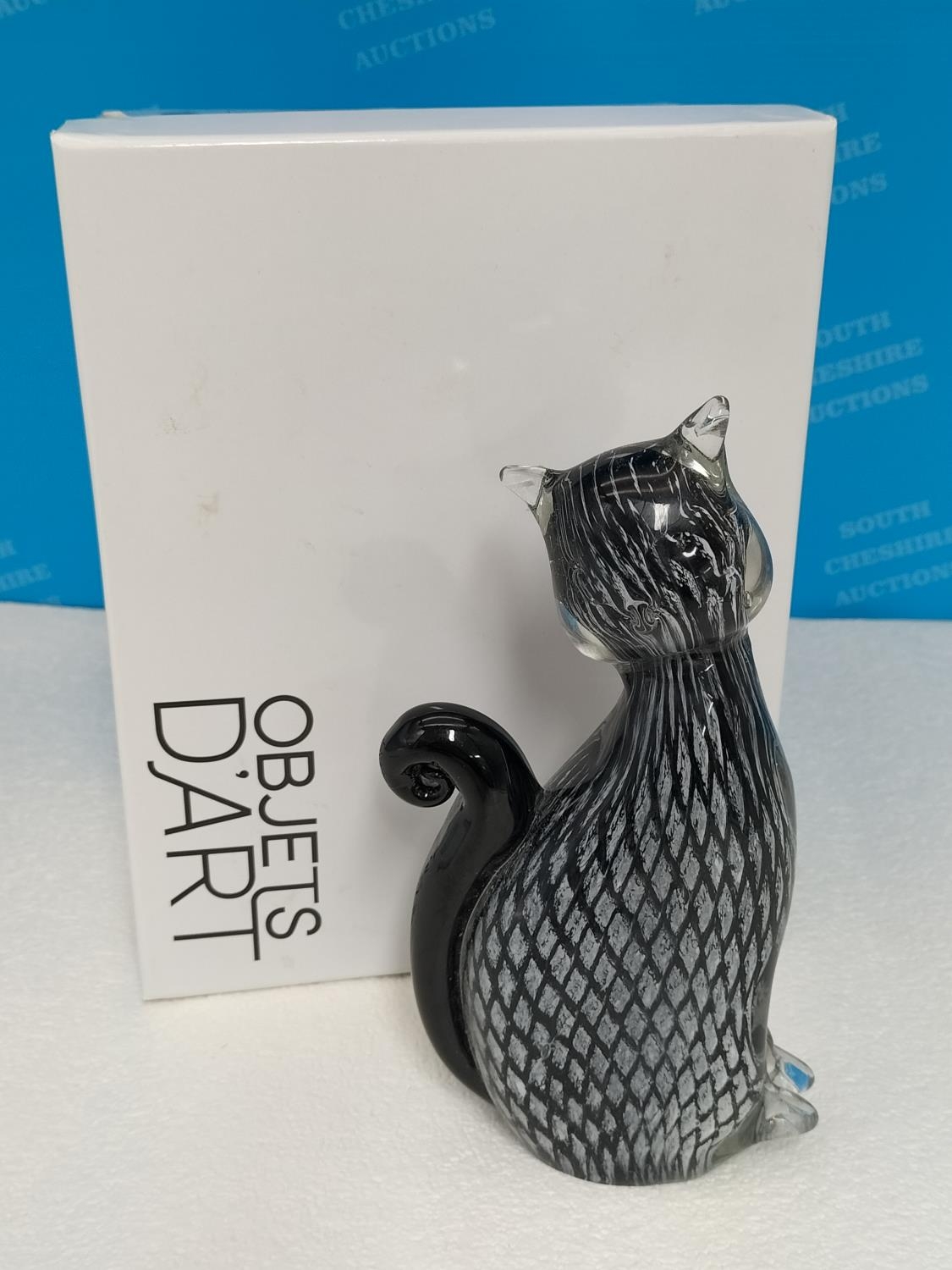 Objects D'Art Boxed Glass Cat Figure. 19cm High.