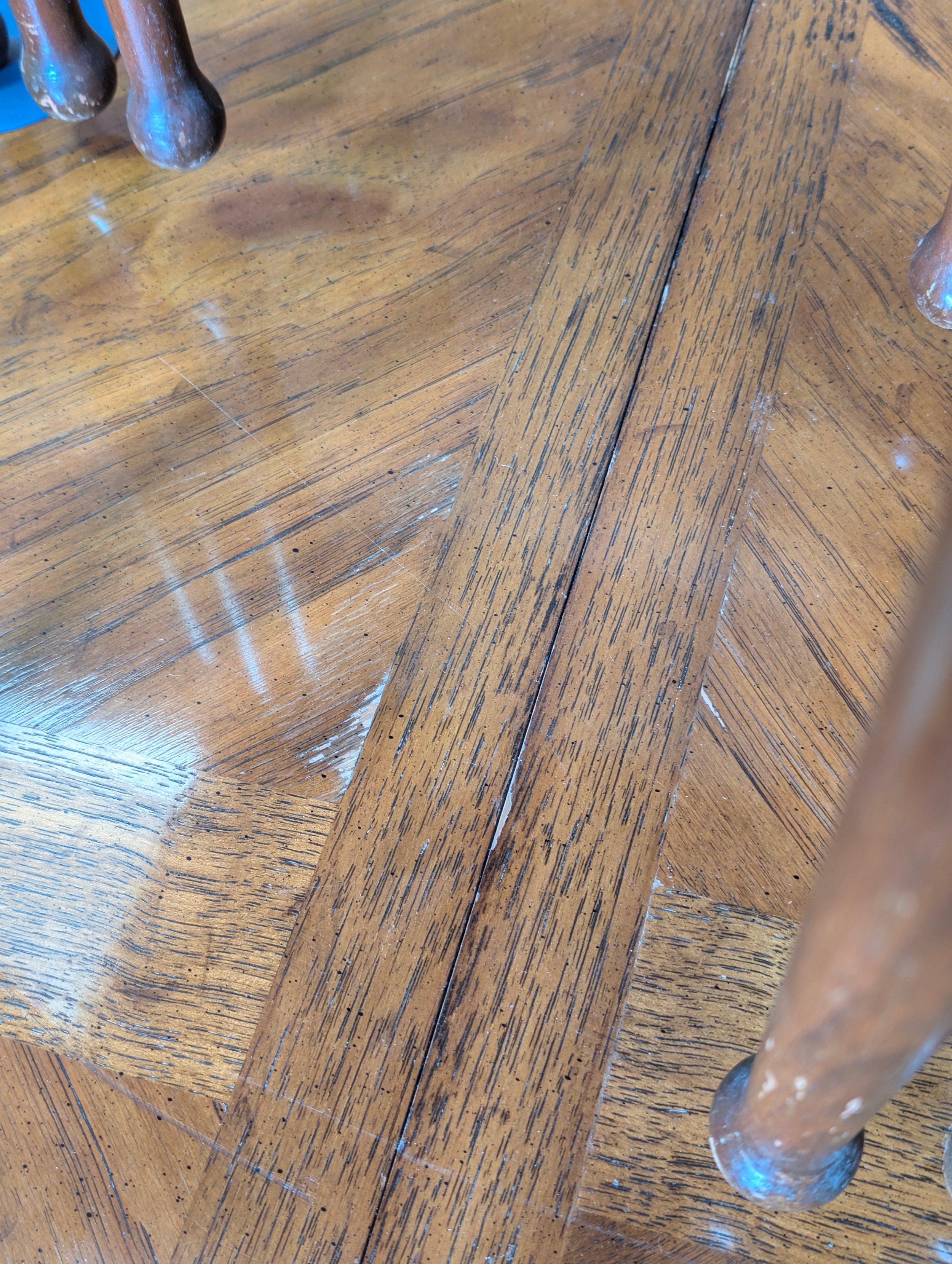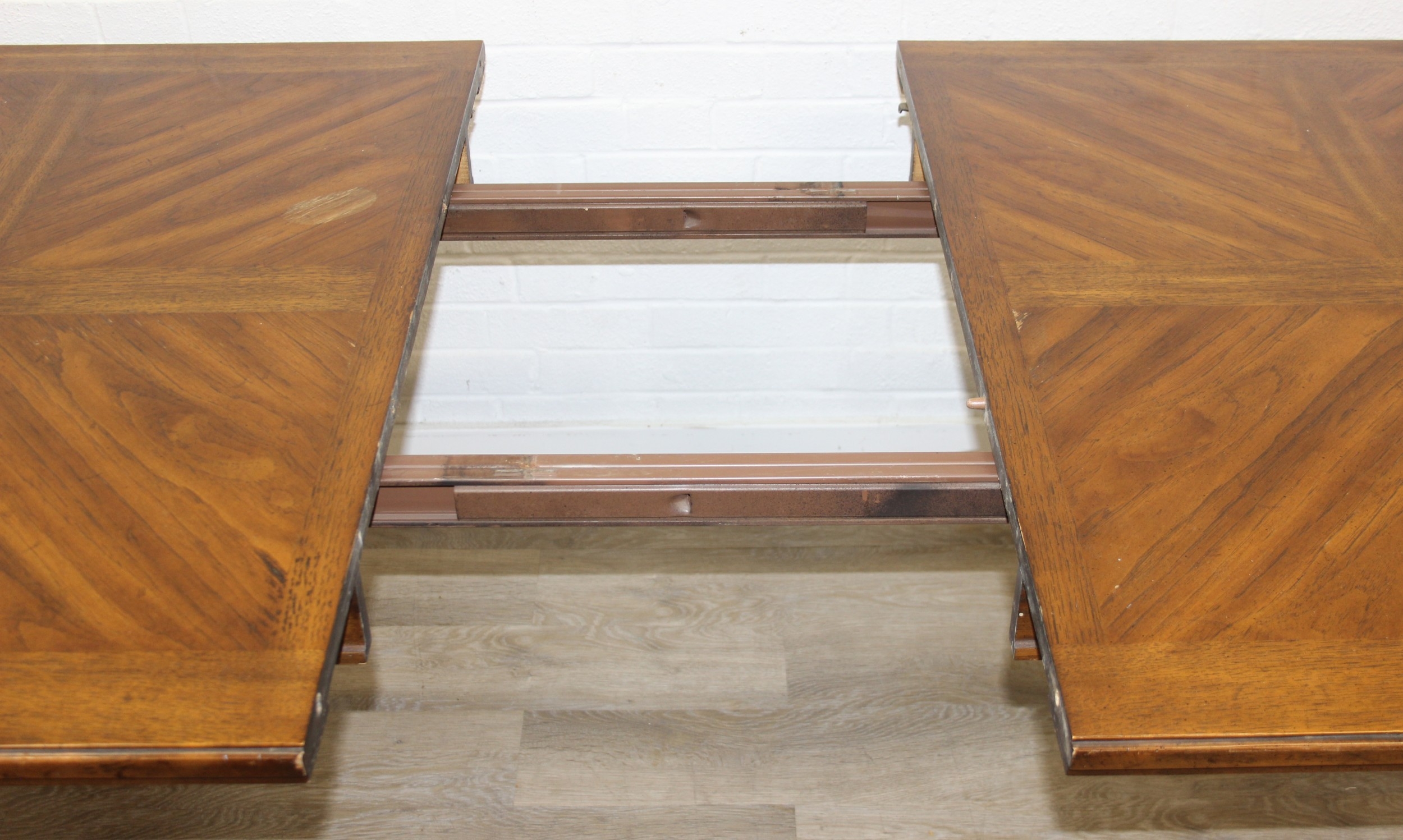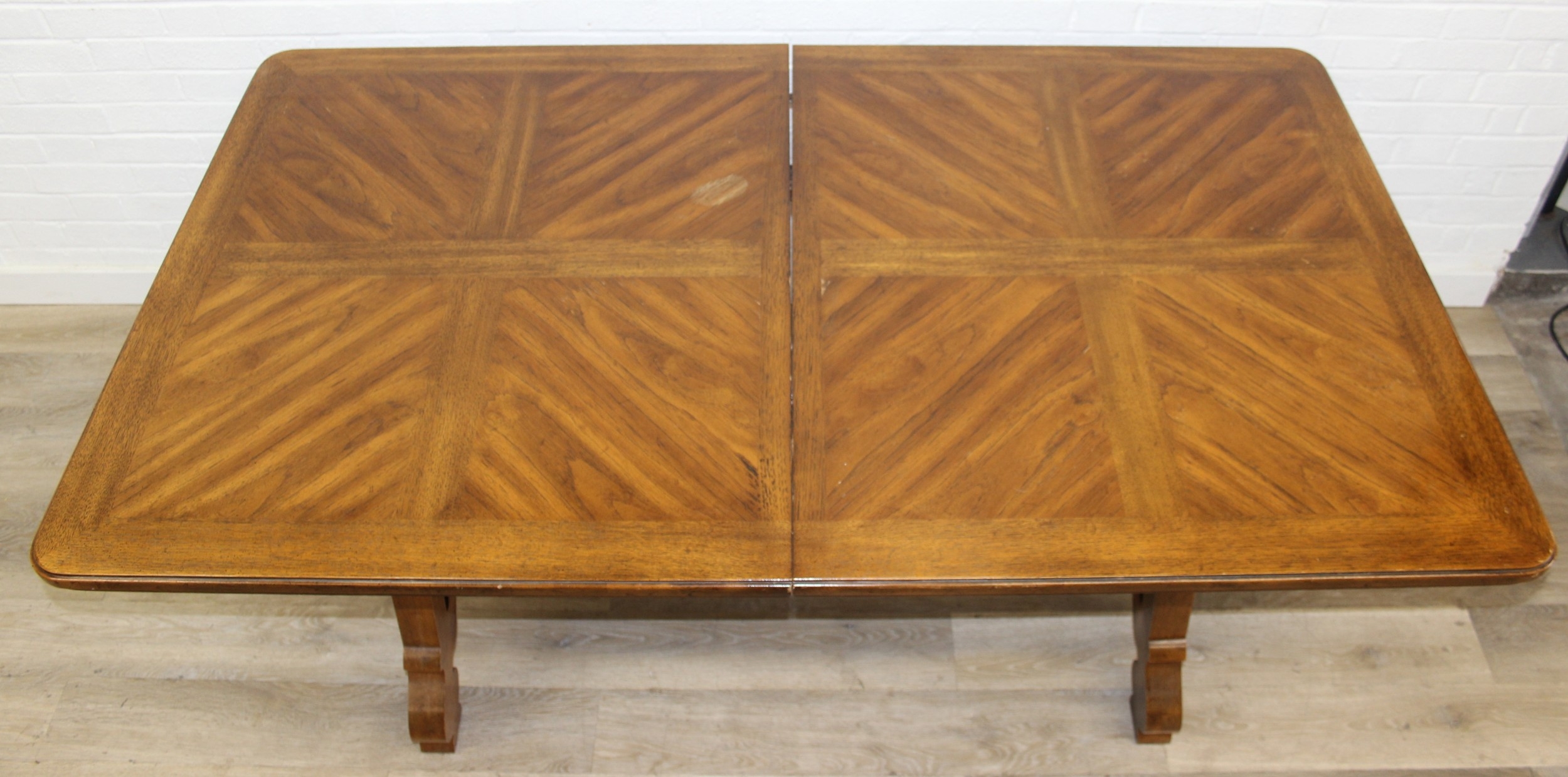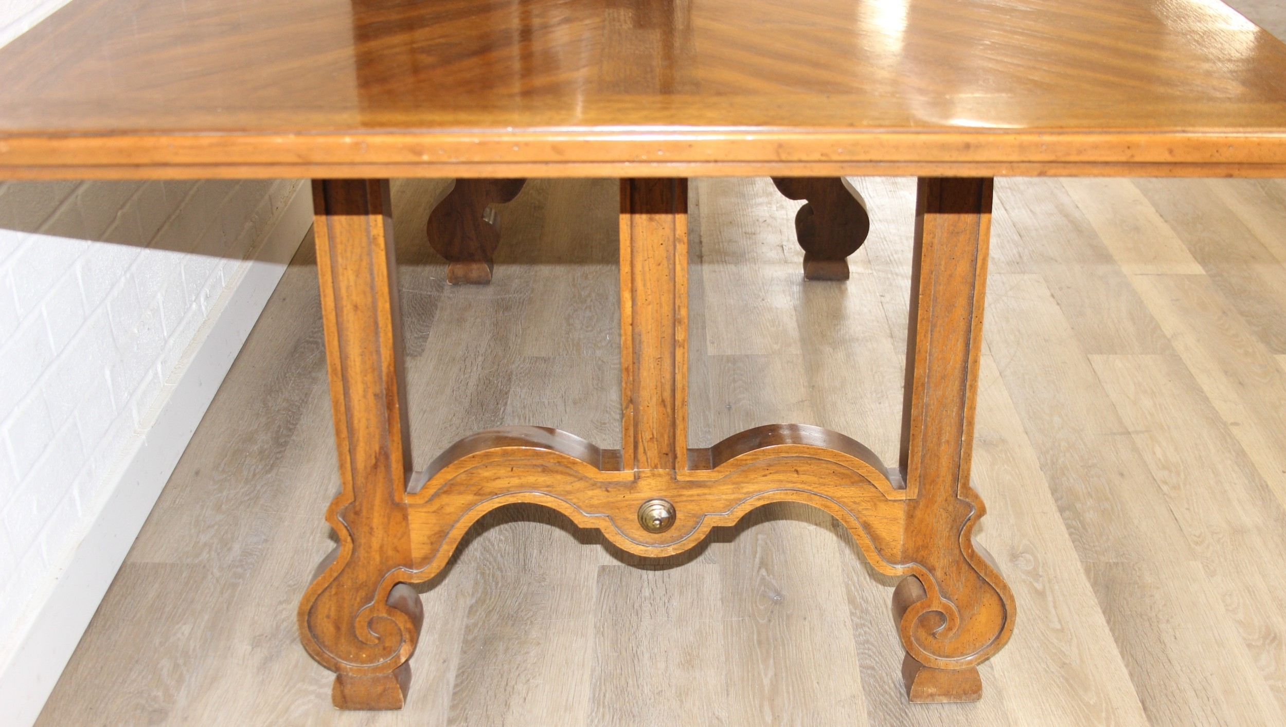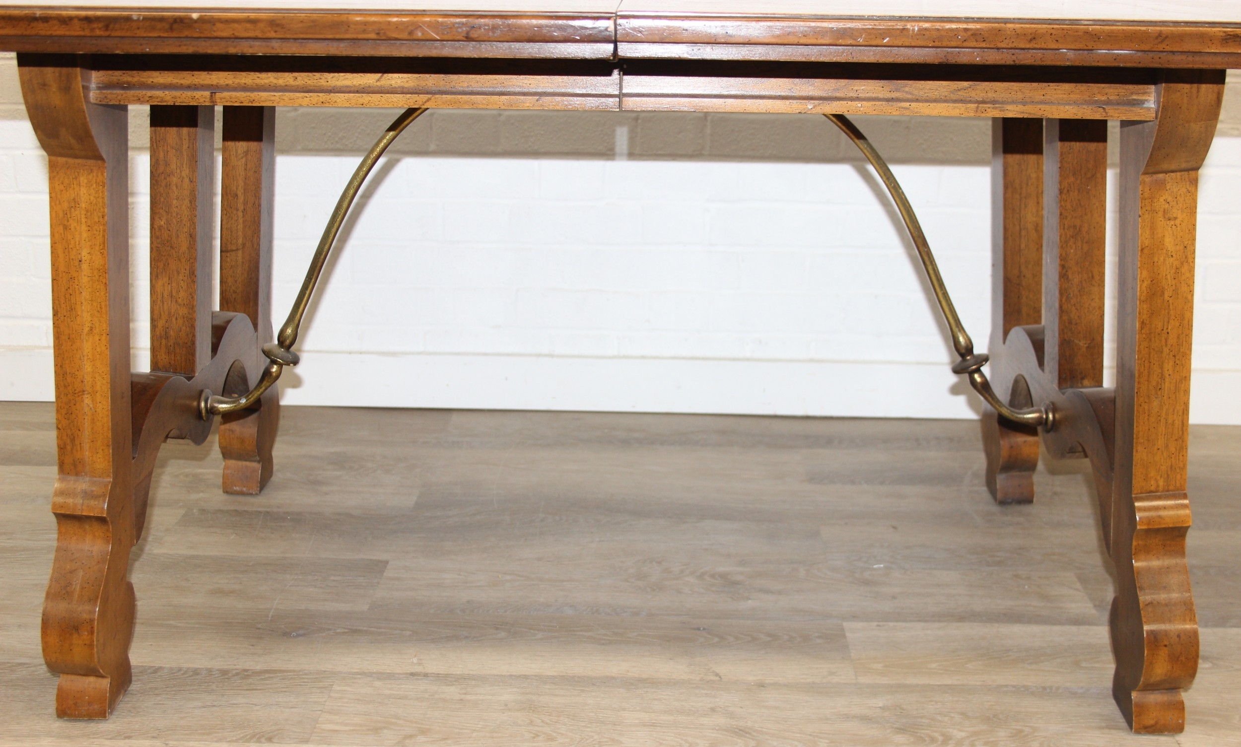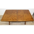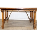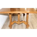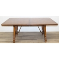 An early 20th century walnut extending dining table with decorative Spanish Baroque style base, with two spare extending leaves, 178cm x 107cm x 75cm, the two extending leaves each 51cm wide