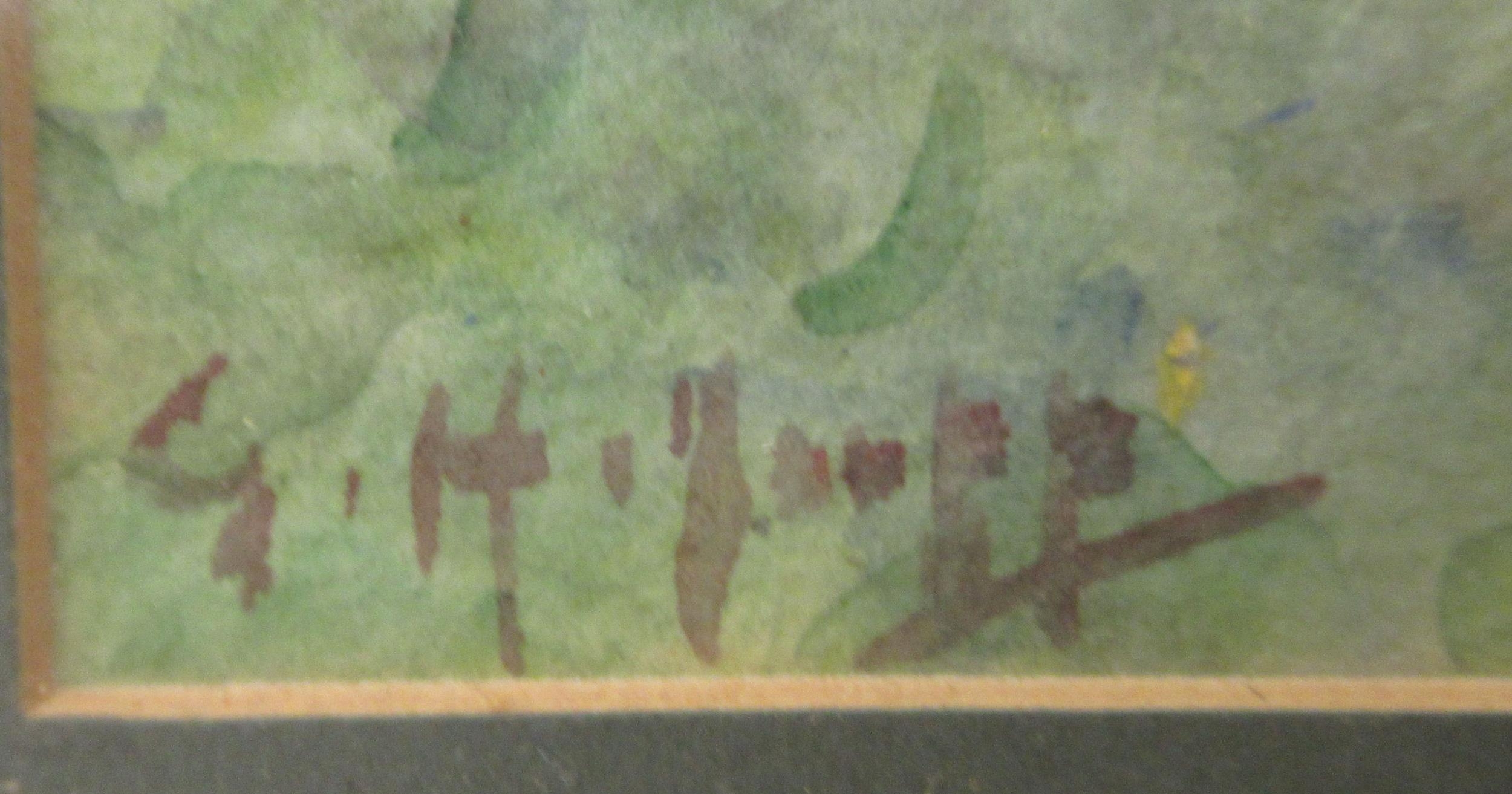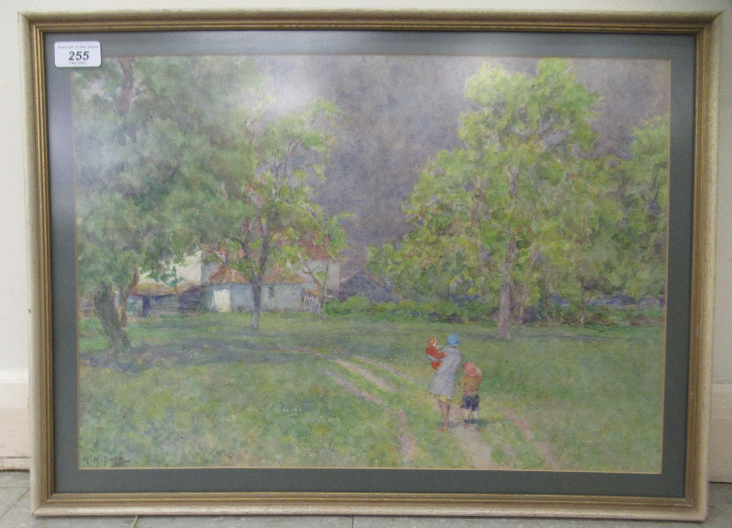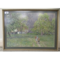 GH Jupp - figures on a path, in an orchard by a cottage watercolour bears a signature 14" x 20" framed