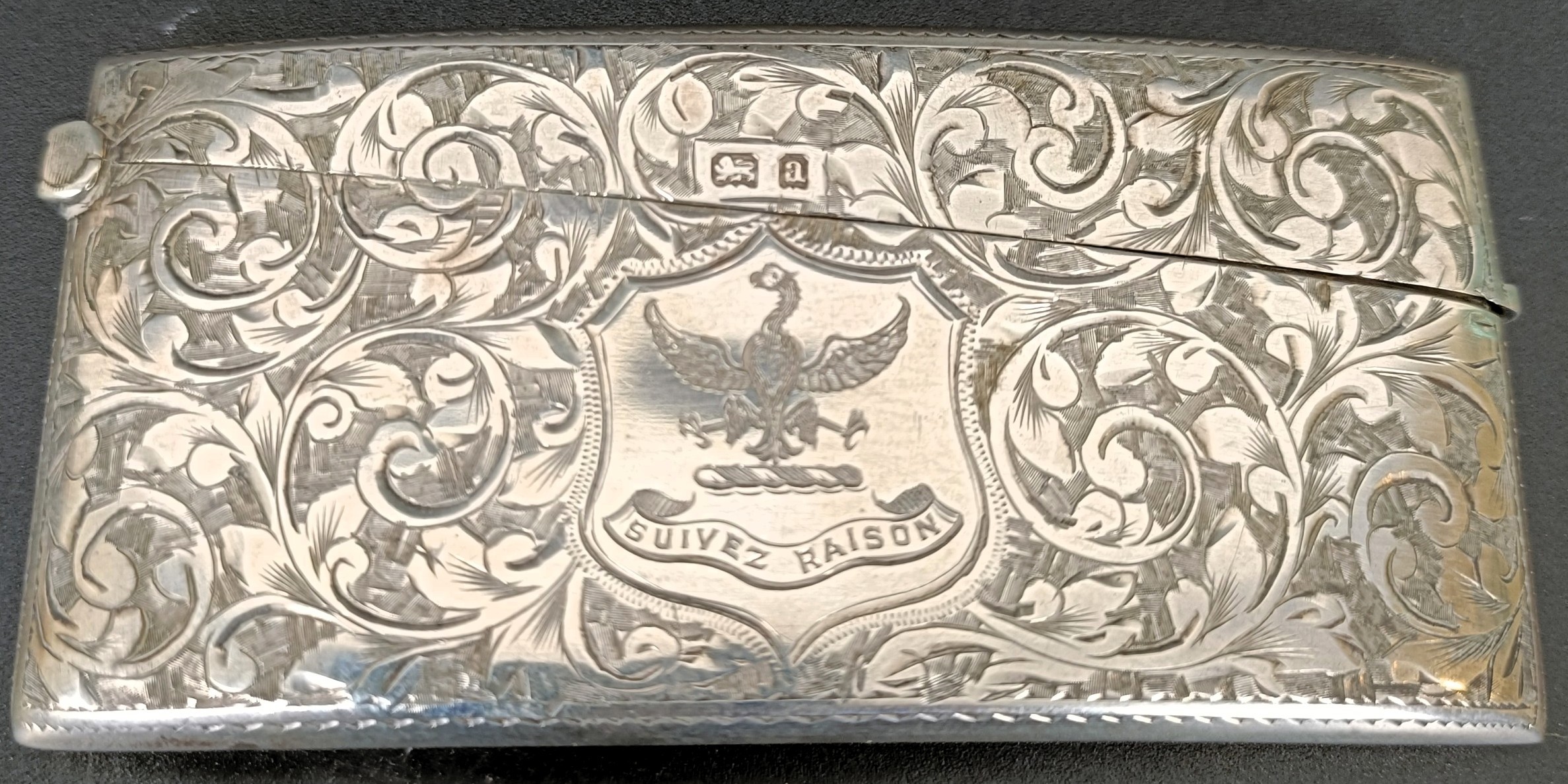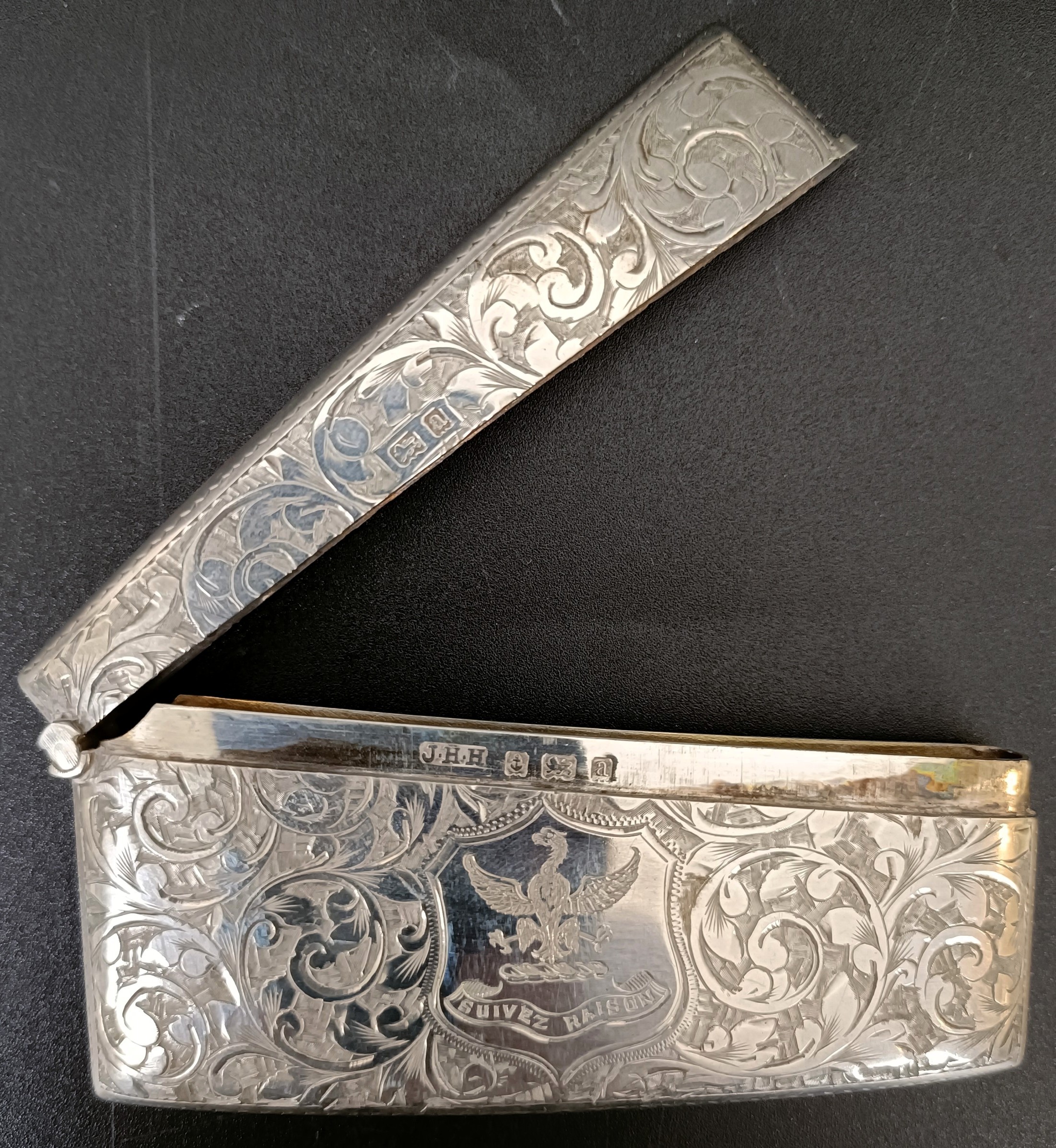 A late Victorian silver card case, engraved, London 1896, 8 cm wide, 1.3 ozt