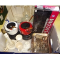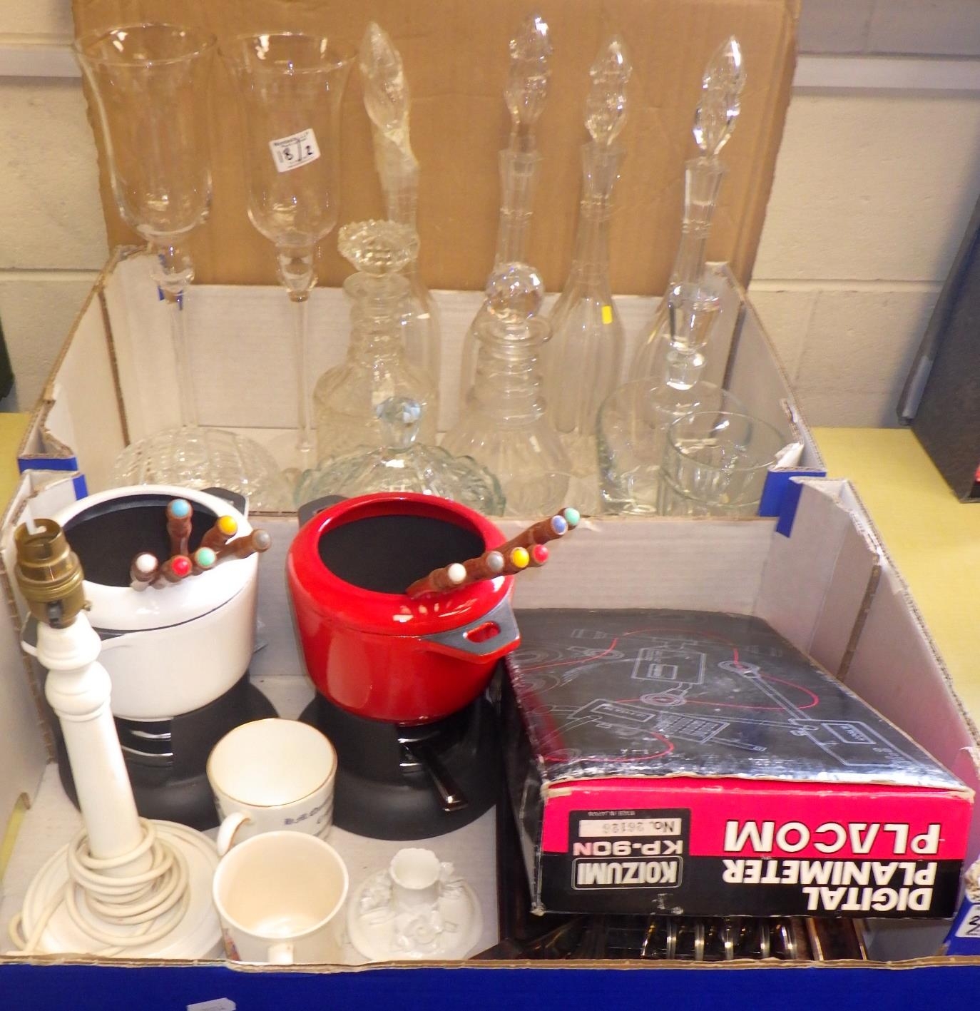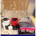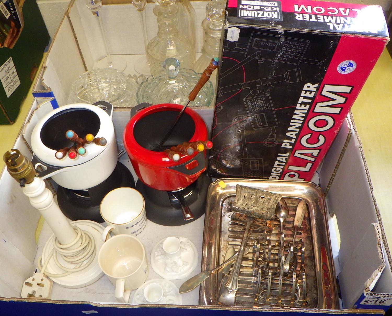 A qty of misc glass, decanters, bowls etc together with a small qty of silver plate, Fondue etc (2)