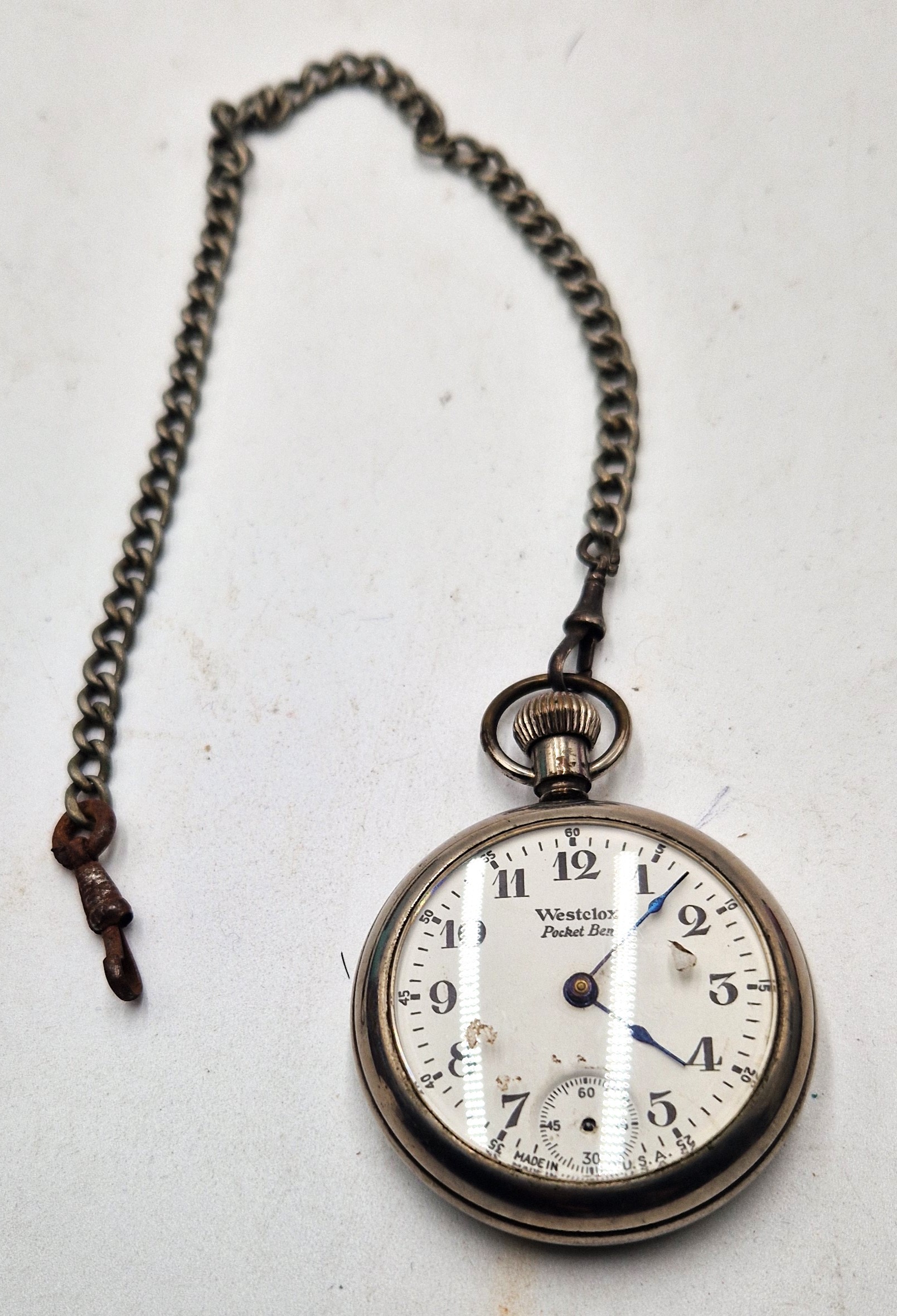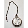 WHITE METAL CASED POCKET WATCH And WATCH CHAIN
