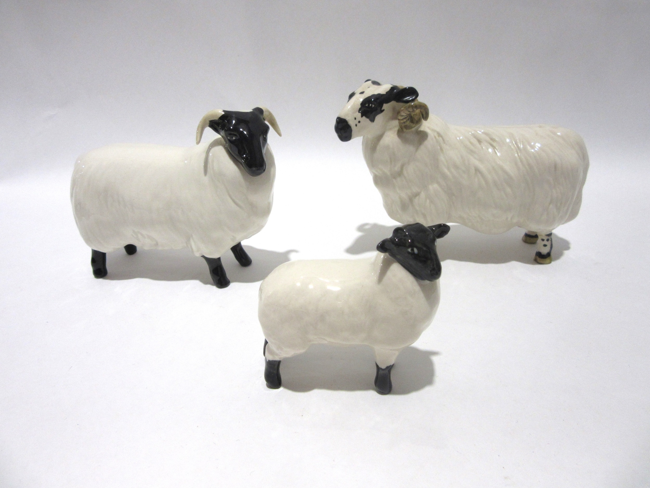 A Beswick Black-faced Ram, model no. 3071, Beswick Black-faced Sheep, model no. 1765 and Beswick Black-faced Lamb, model no. 1828