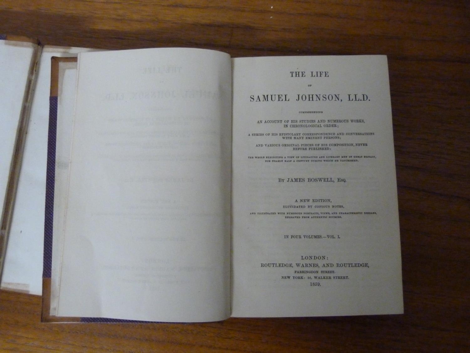 BOSWELL JAMES. The Life of Samuel Johnson. 2 vols. Text illus. Half calf, faded backs. 1859.