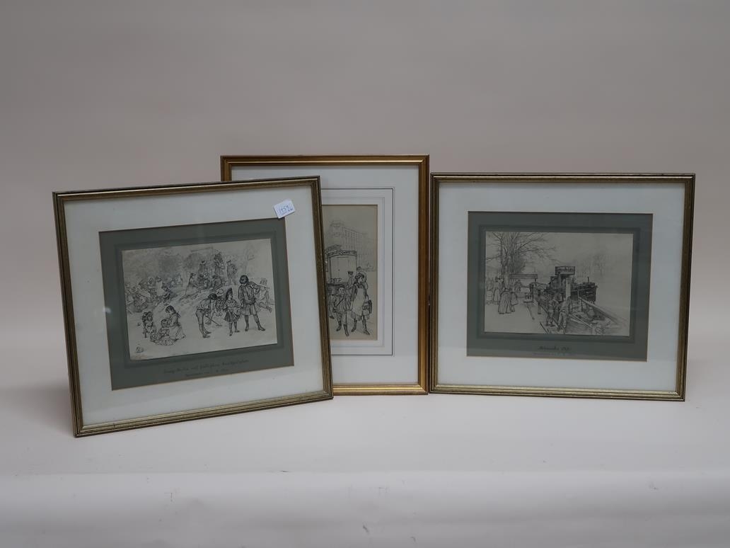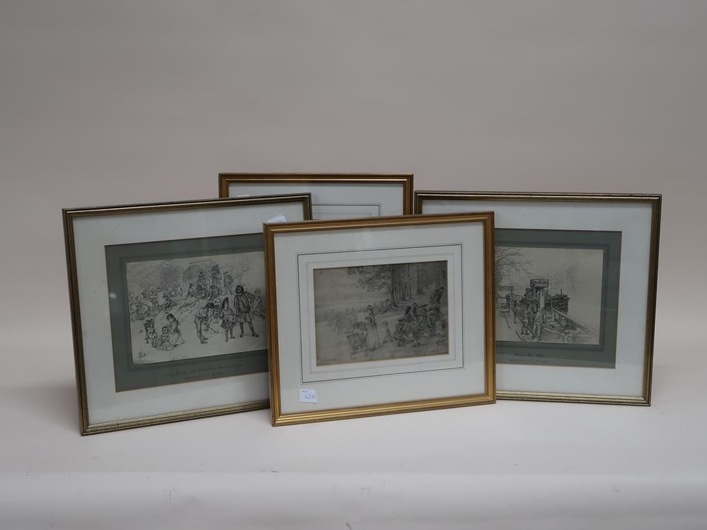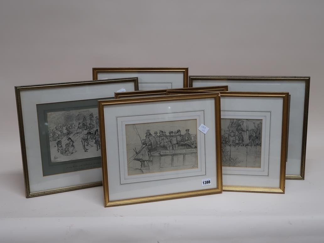 SERIES OF SIX F/G B&W SKETCH PRINTS BY C W ALLERS, EACH APPROX 20CMX 28CM