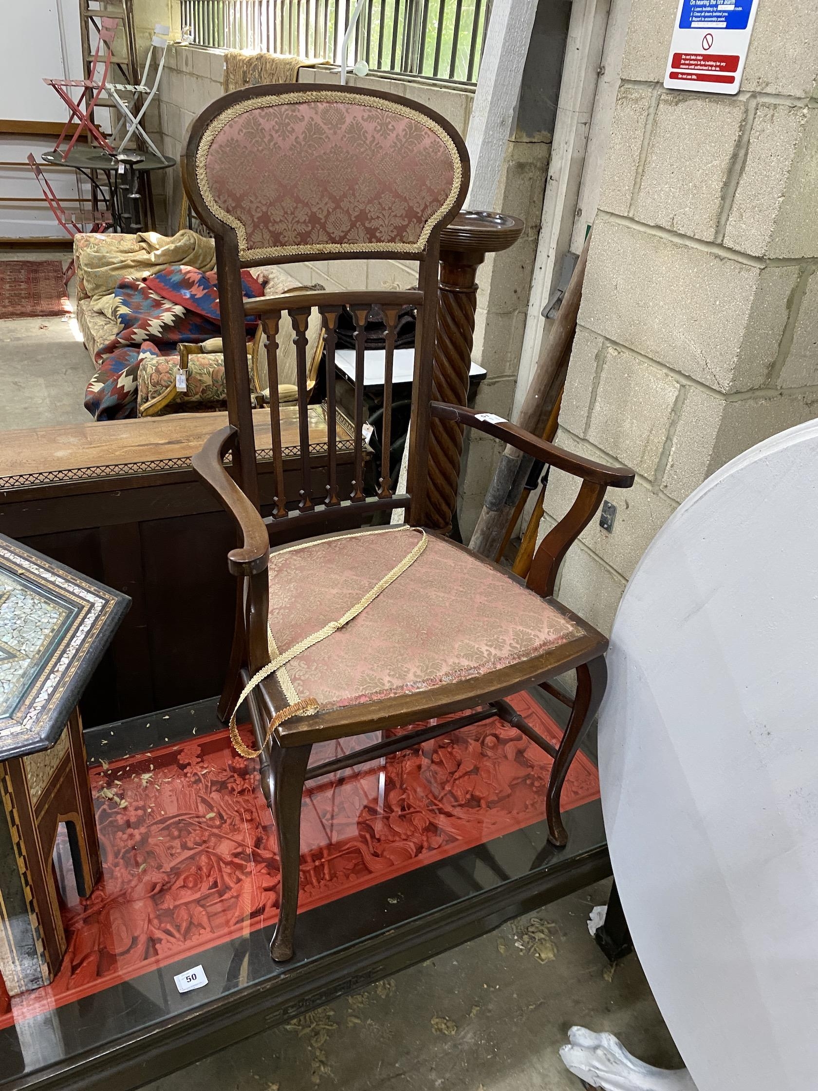 An Edwardian Art Nouveau inlaid mahogany elbow chair