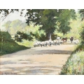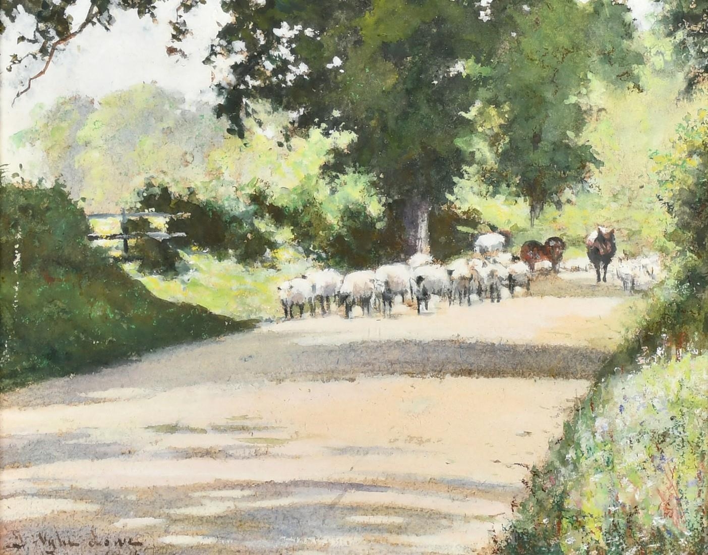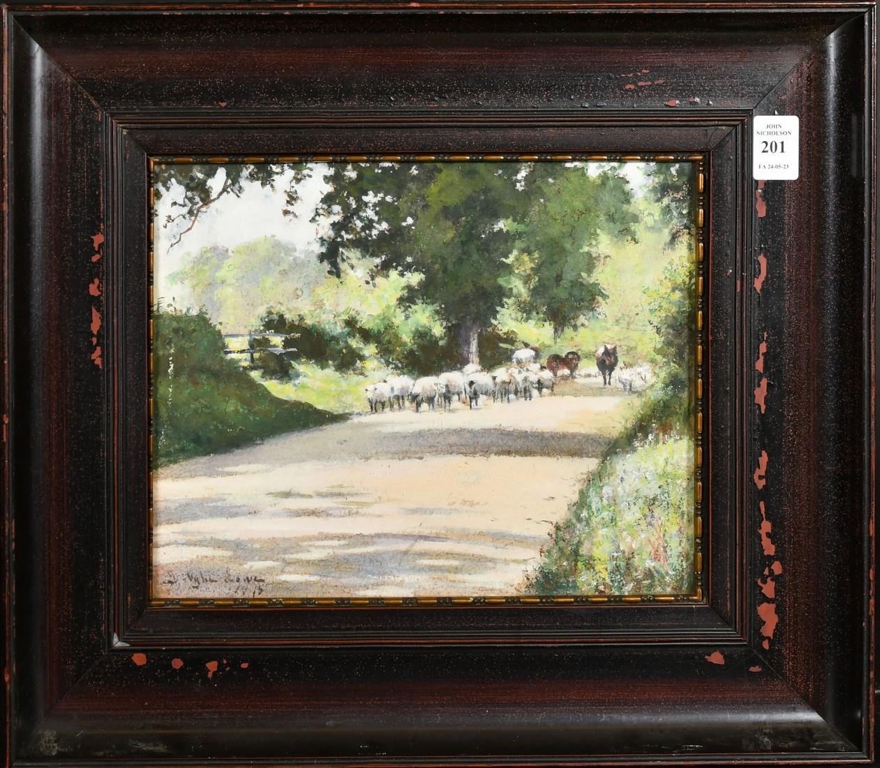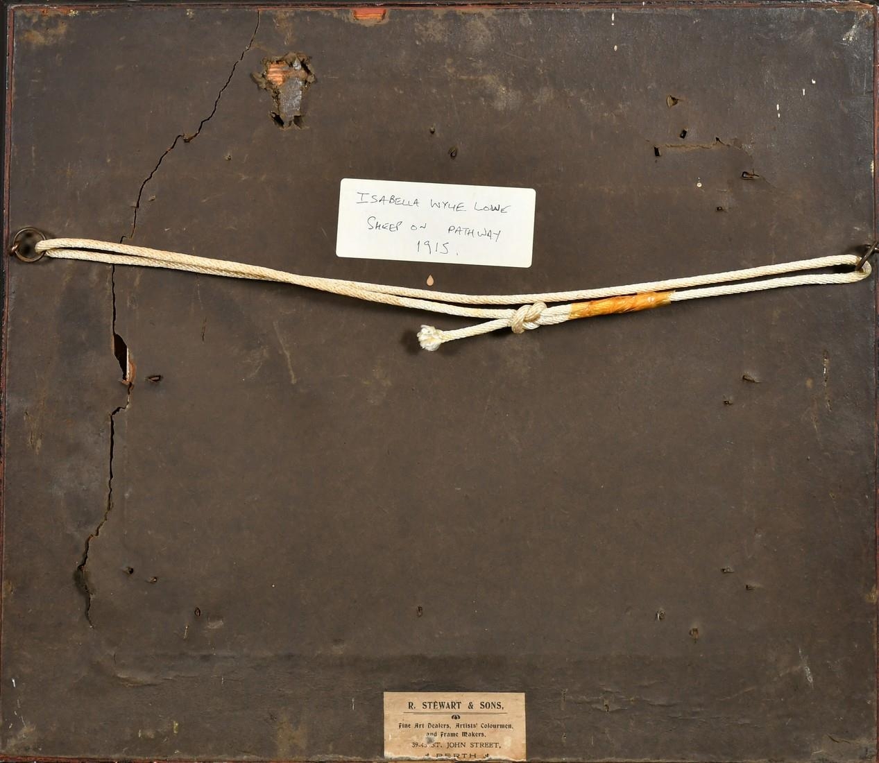 Isabella Wylie Lowe, Sheep on a country lane, watercolour, signed and dated 1915, 8.25" x 10.5", (21x26.5cm).