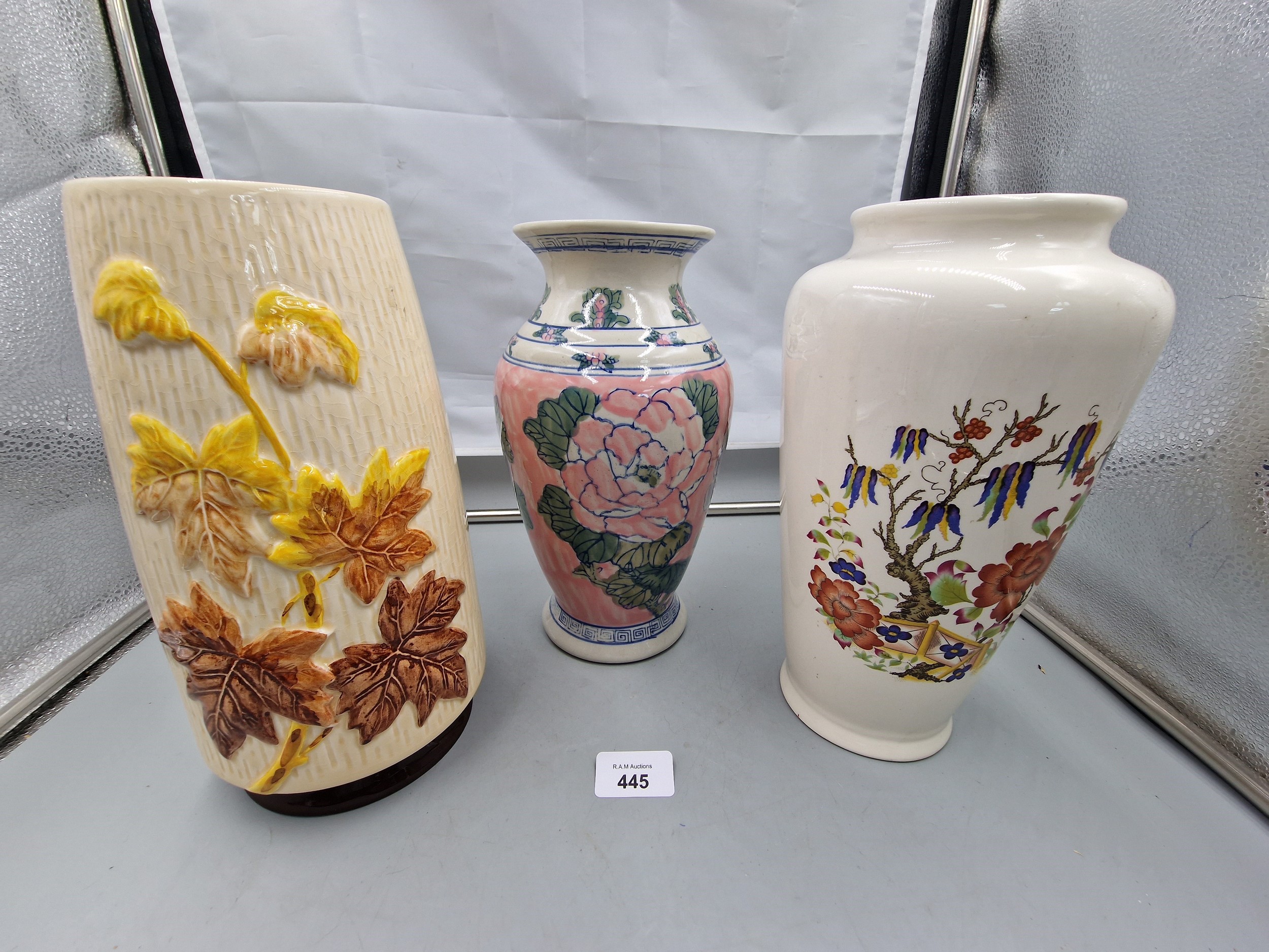 Sylvac Autumn Vase, Pink Floral Vase and A Melbaware Vase.
