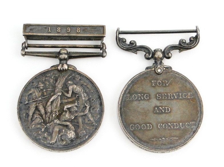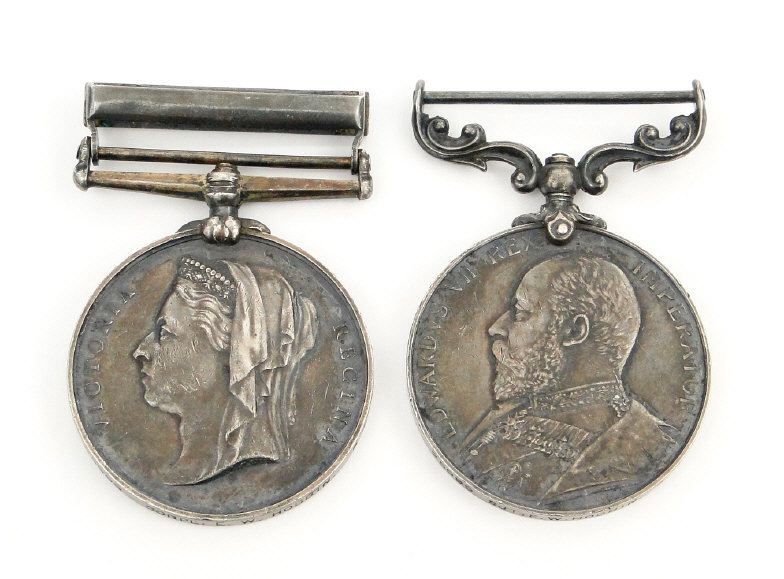British military medal group comprising East and West Africa medal with 1898 bar marked 25999 CORPL;E.W.HOGBIN.R.E. to the rim, together with an Edward VII Long Service and Good Conduct medal marked 25999 SJT;E.W.HOGBIN.R.E. to the rim