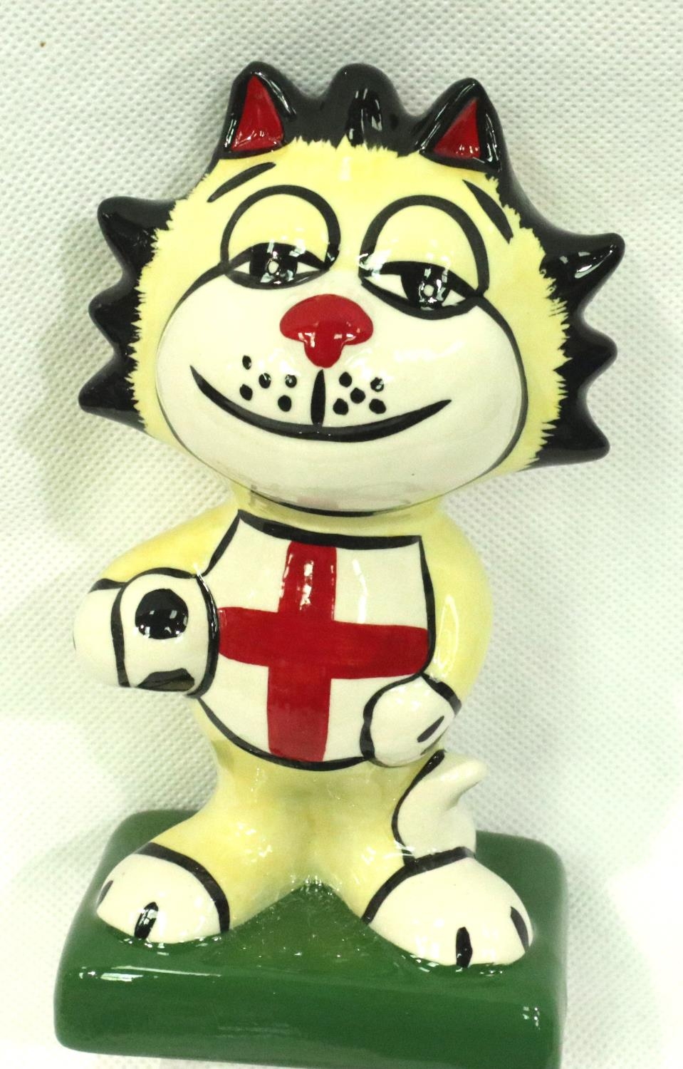 Lorna Bailey, Football Cat, H: 12 cm. No cracks, chips or visible restoration. P&P Group 1 (£14+VAT for the first lot and £1+VAT for subsequent lots)