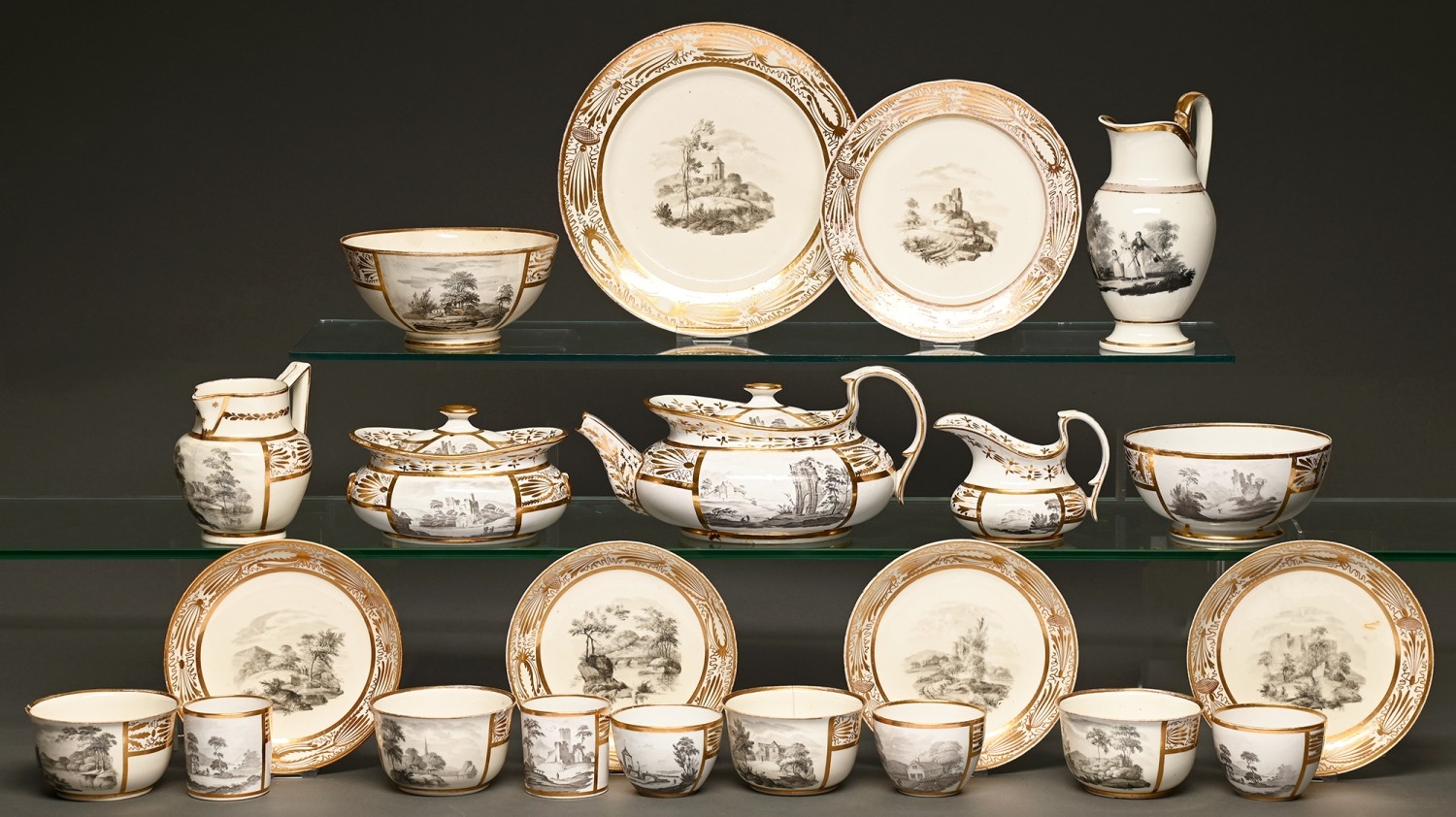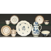 A New Hall bat printed tea and coffee service, c1805, pattern 558, teapot and cover 13cm h, and various other similar contemporary English porcelain teaware
