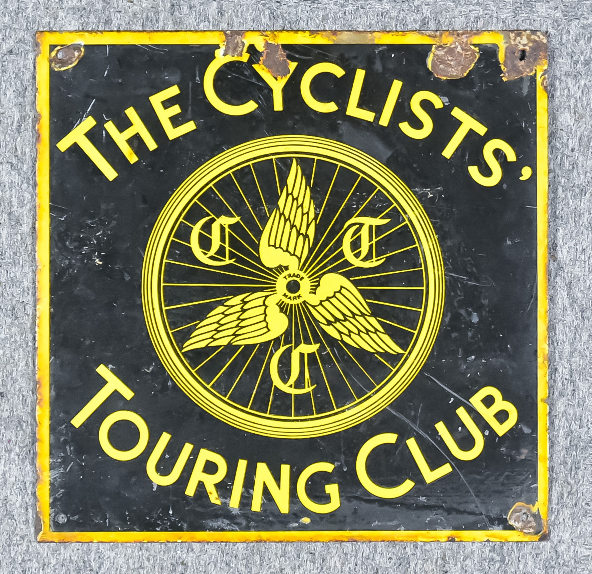 A "Cyclist's Touring Club" Enamel Advertising Sign, in yellow and black, 16ins wide x 16ins high
