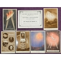 A group of six WWI Zeppelin postcards relating to the raid on Cuffley, September 3rd, 1916.: including two of Lieut W L Robinson, together with a souvenir booklet of photographs of the downed zeppelin.