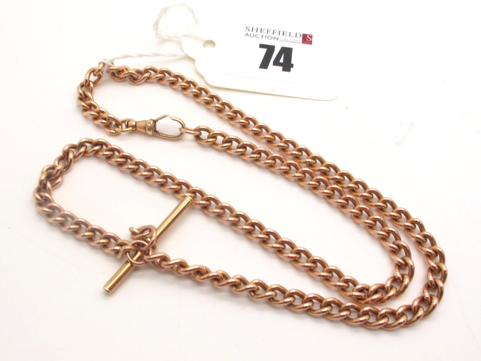 A 9ct Gold Curb Link Chain, to single swivel clasp, suspending a T-bar (14grams).