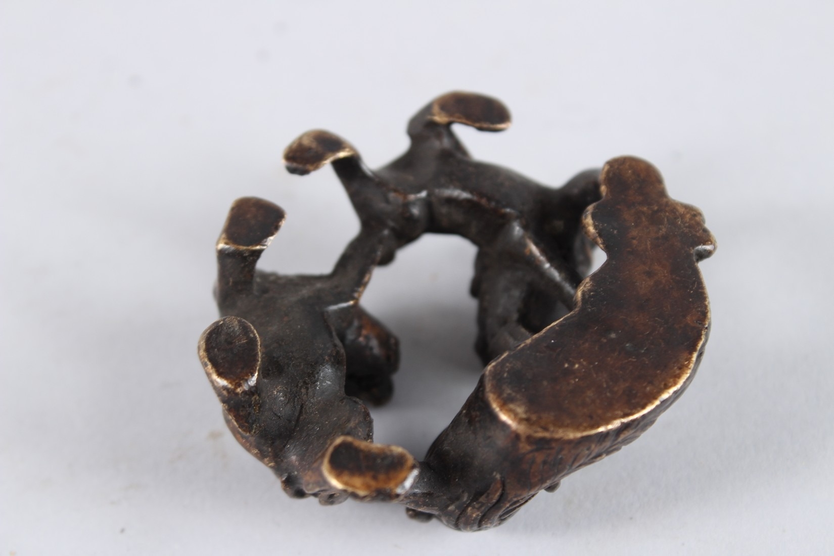 A BRONZE ROUNDEL, THREE DOGS. 2ins diameter.