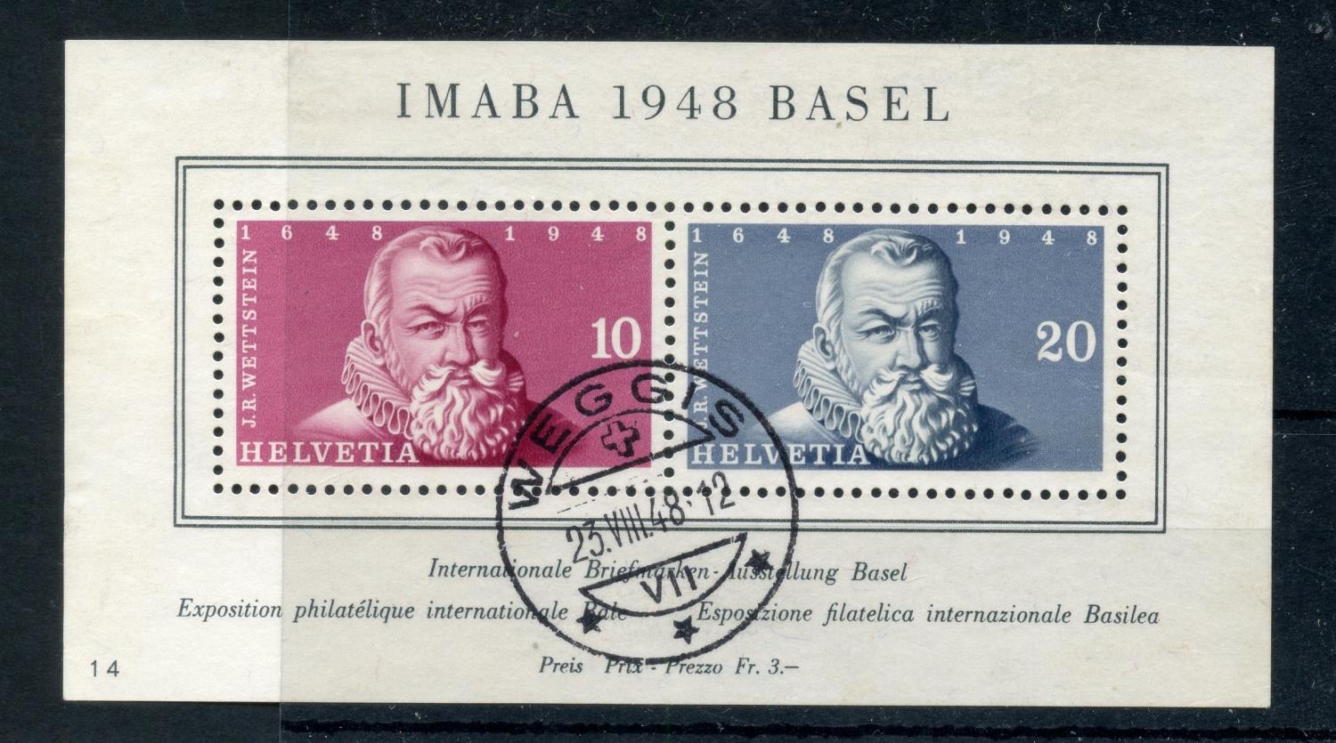 SWITZERLAND 1948 National Philatelic Exhibition MS fu, Weggis cds. SG 498a. Cat £110.