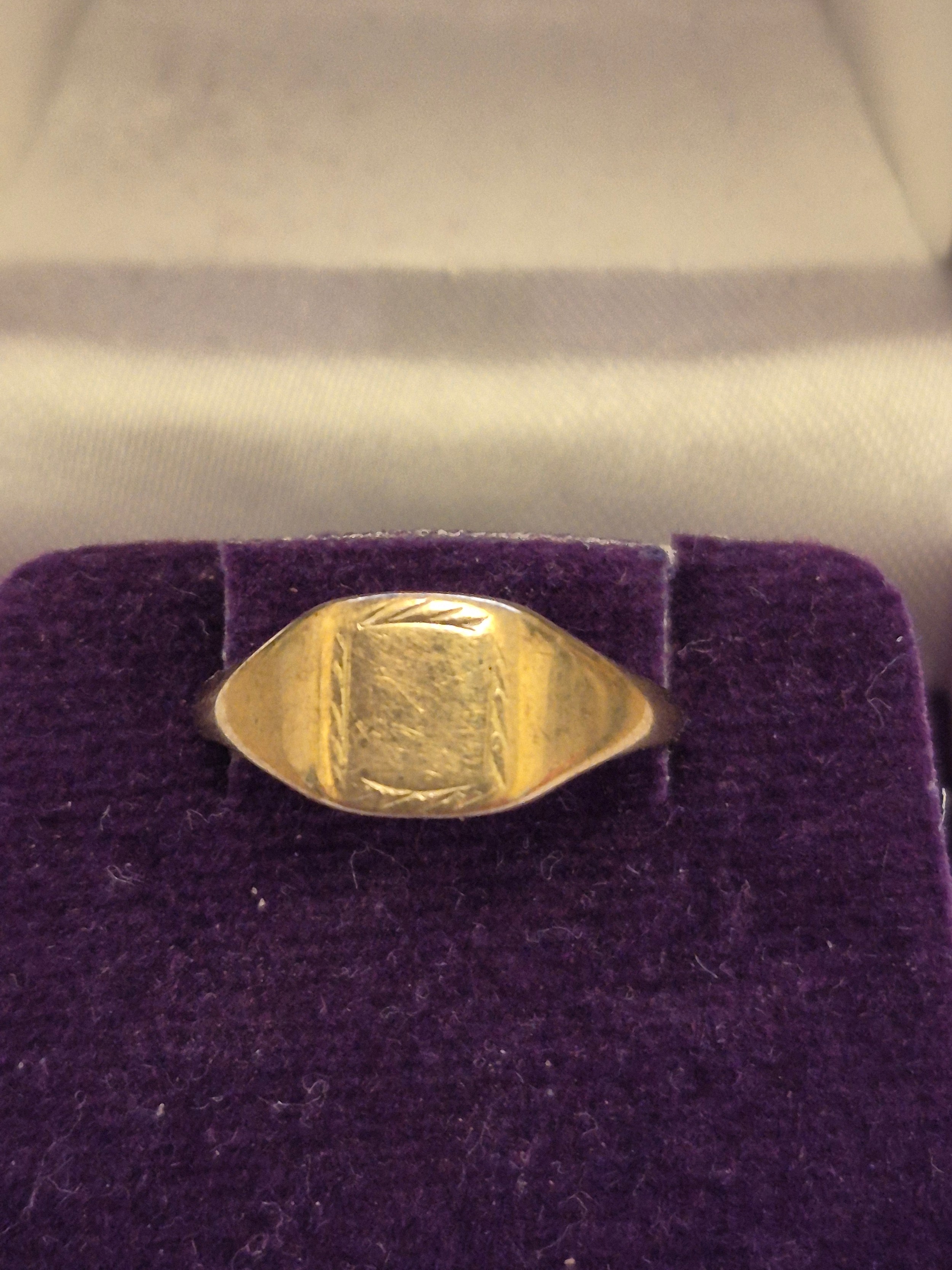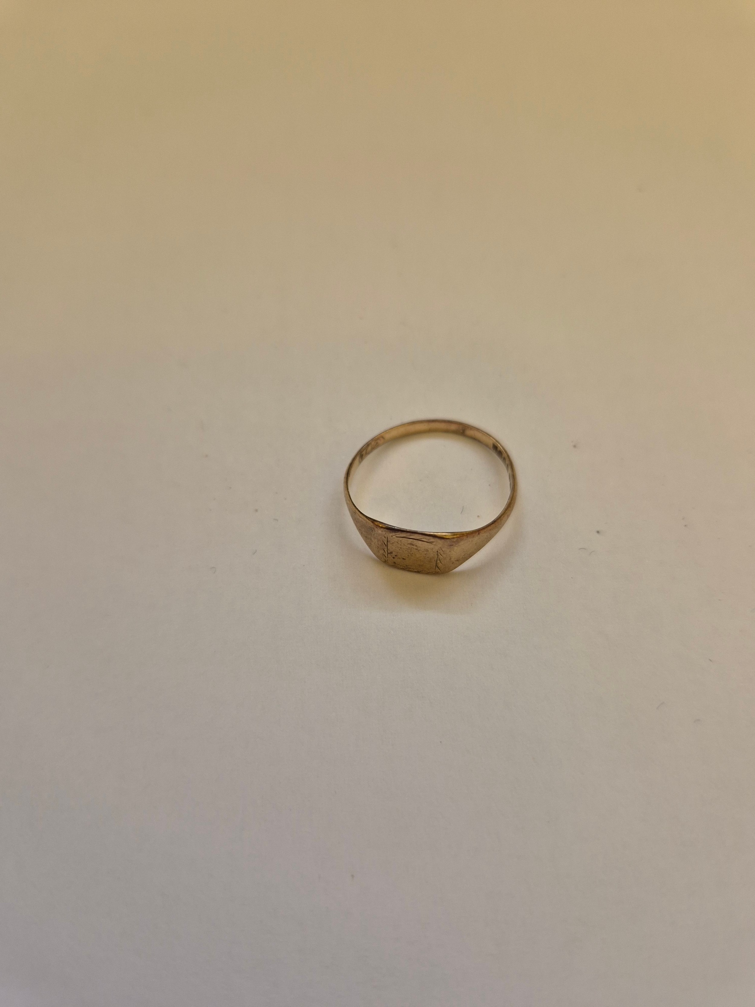 A vintage petite 9ct gold signet ring, size G. 0.8 grams