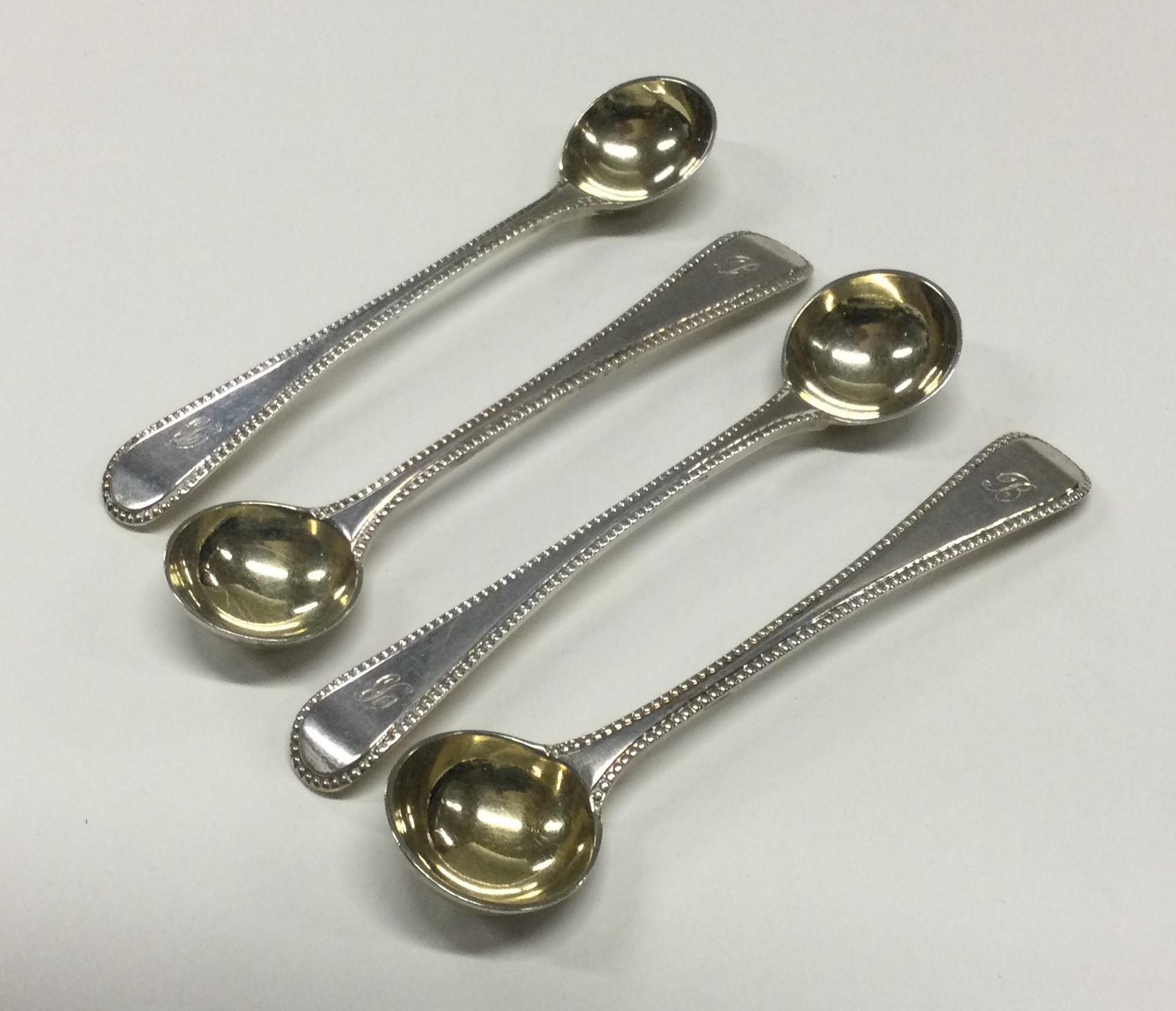 Four bead pattern silver salt spoons. London 1855. By GA. Approx. 64 grams. Est. £40 - £60.
