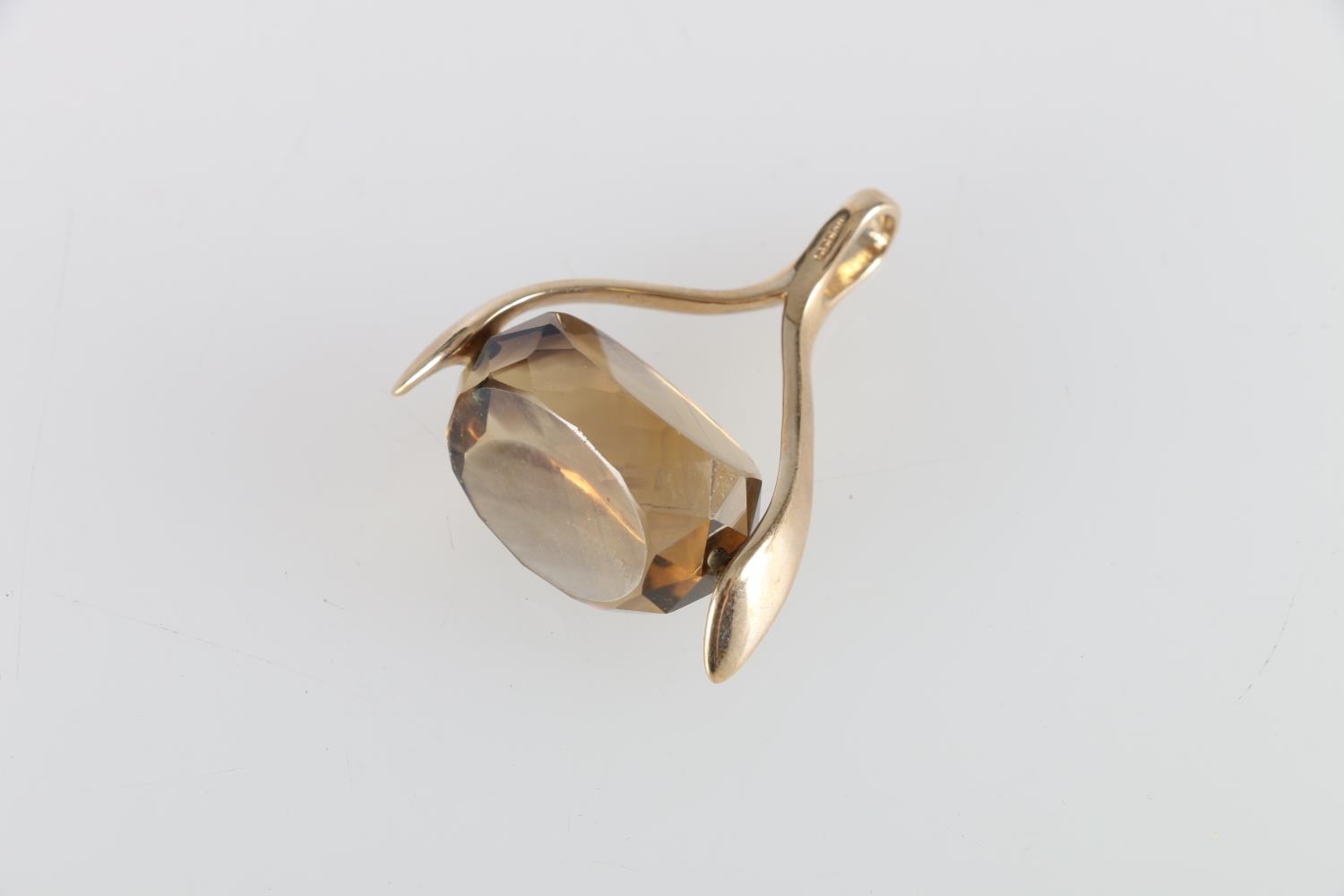 9ct gold fob in the form of a wishbone set with swivel citrine, 11.1g gross