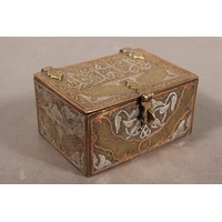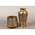 Syrian Damascus style copper and silver overlaid brass vase 15cm tall and a similar pot 8cm tall. (2)