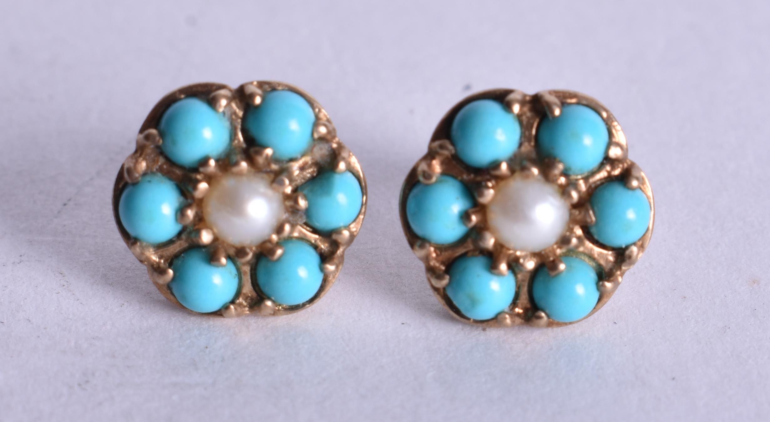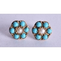 9ct gold split pearl turquoise earrings (2.4g). 1 cm wide.