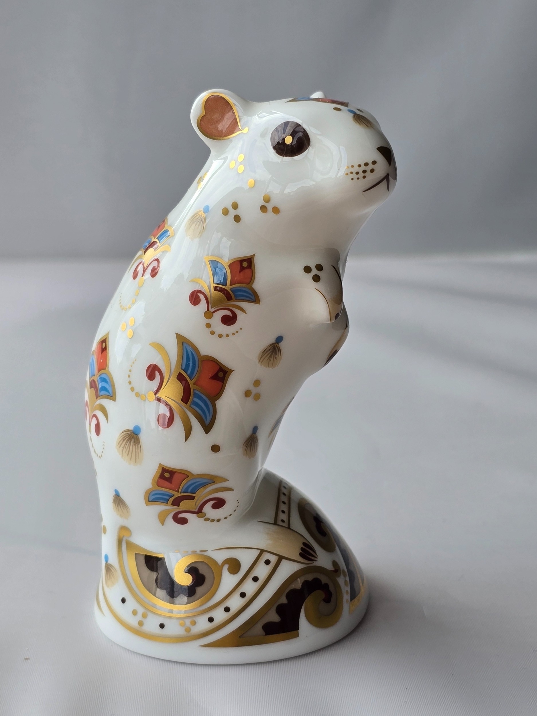 Royal Crown Derby Gerbil ceramic paperweight. Gold RCD stopper - First quality. Excellent condition. Boxed.