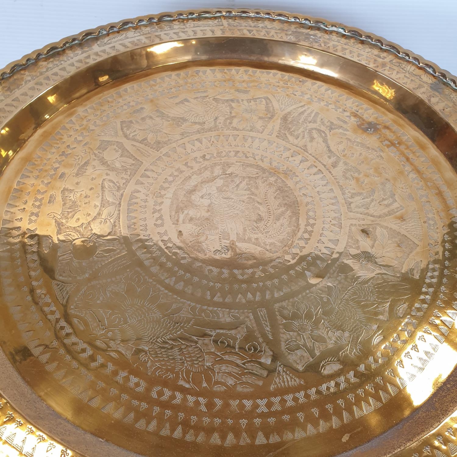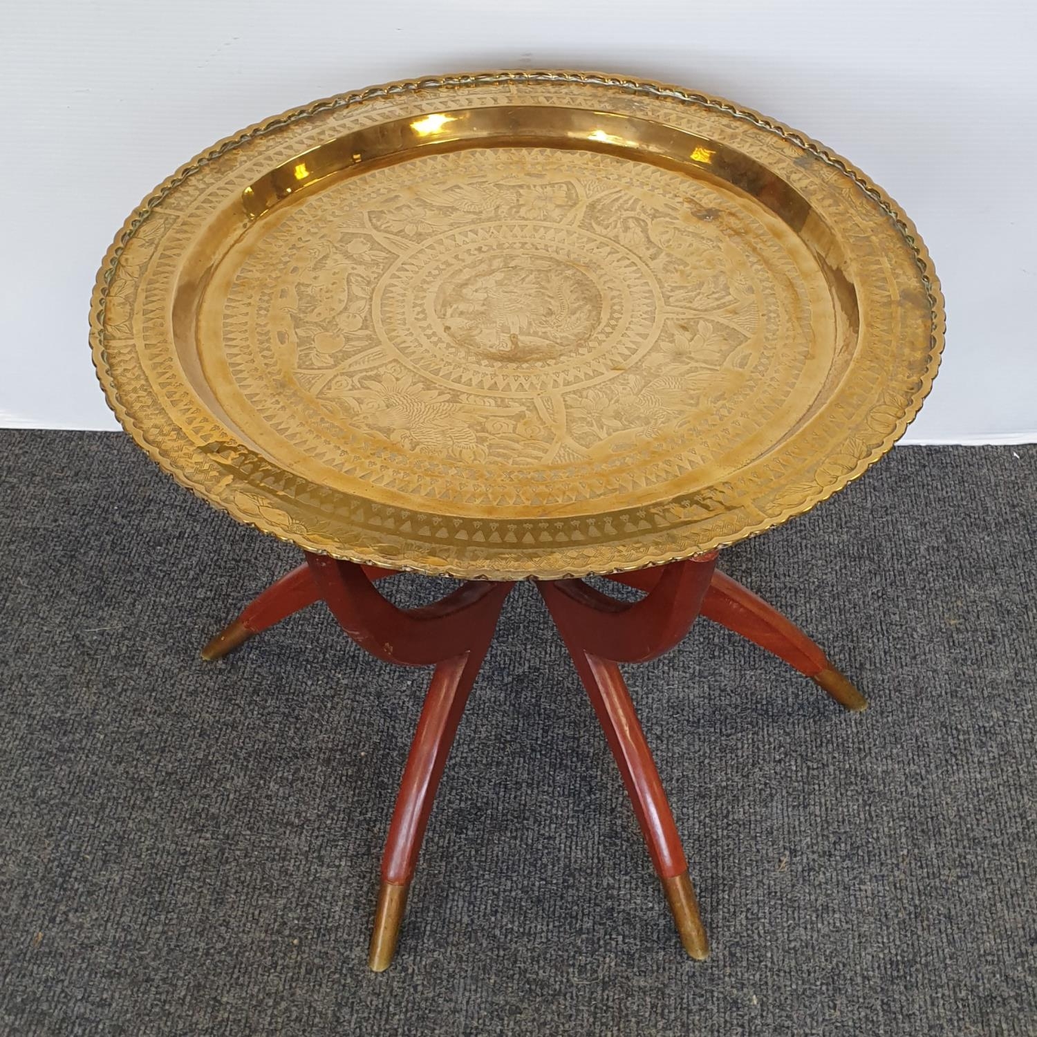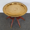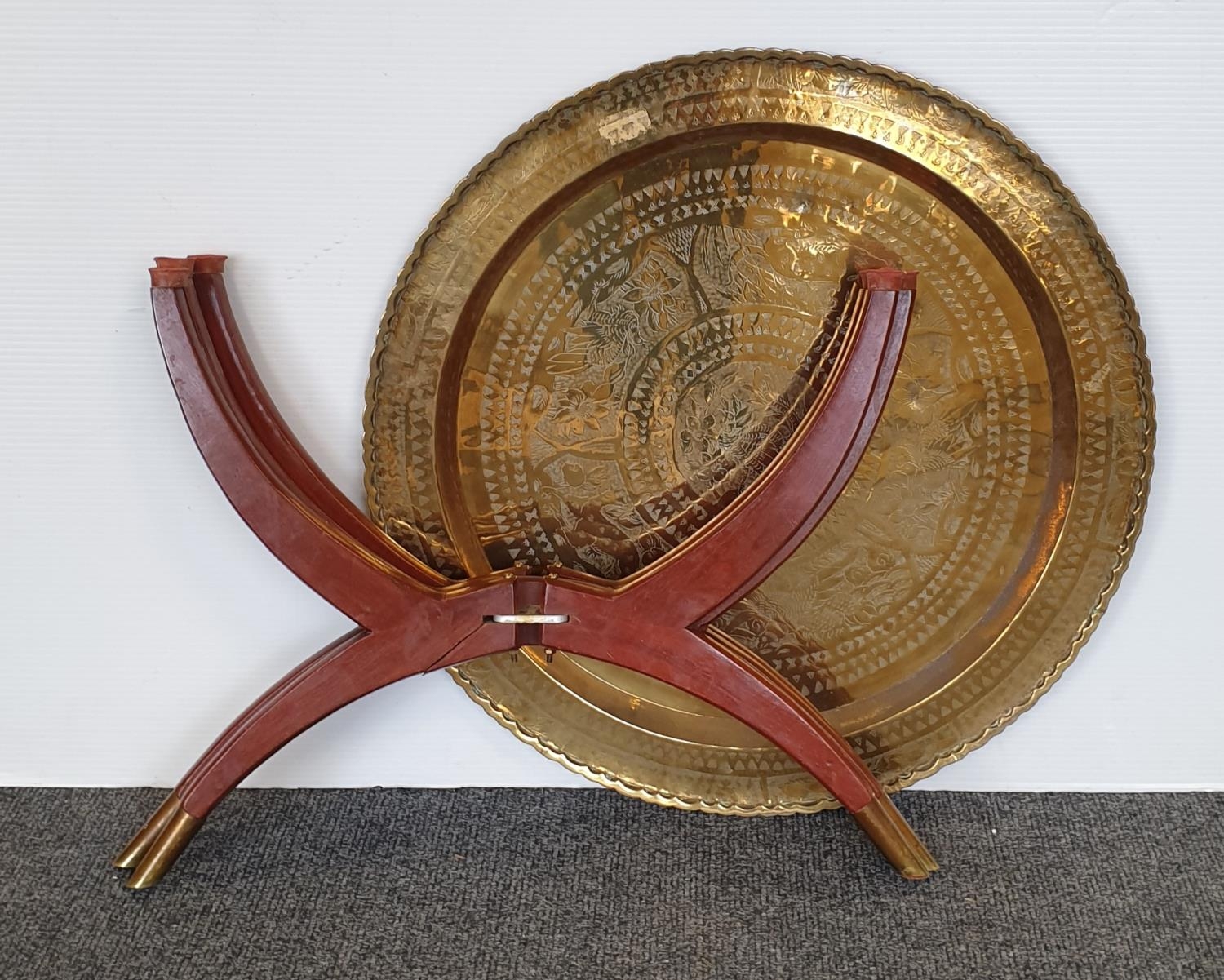 Folding Circular Brass Occasional Tray Table, H:47 x D:61cm
