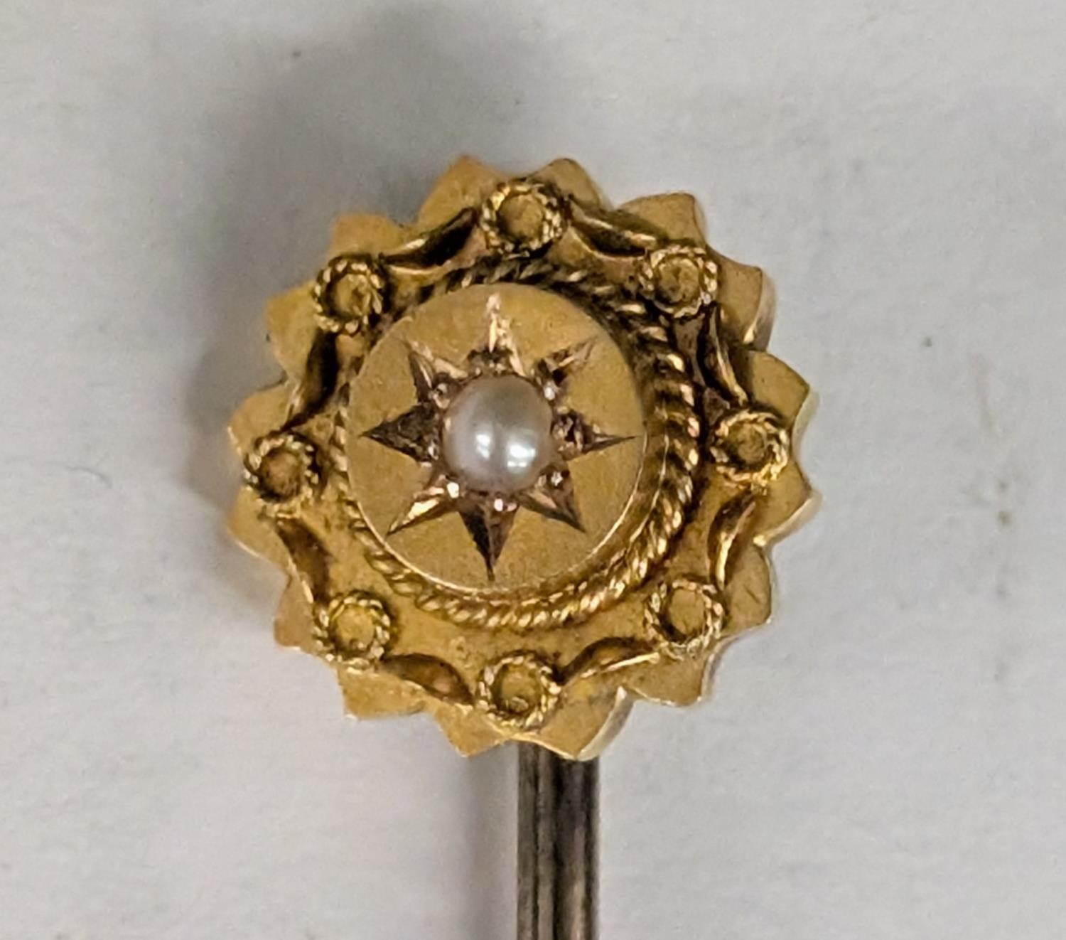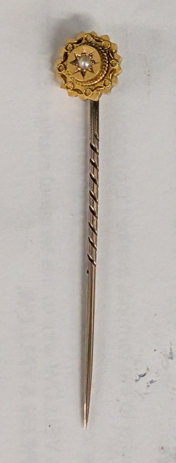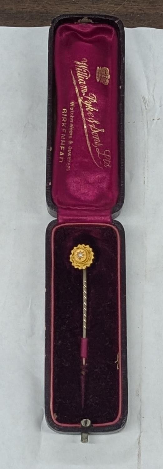 A Victorian 15ct Gold and Seed Pearl Stick Pin, in a William Duke & Sons Ltd. Box - 1.5 gm