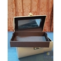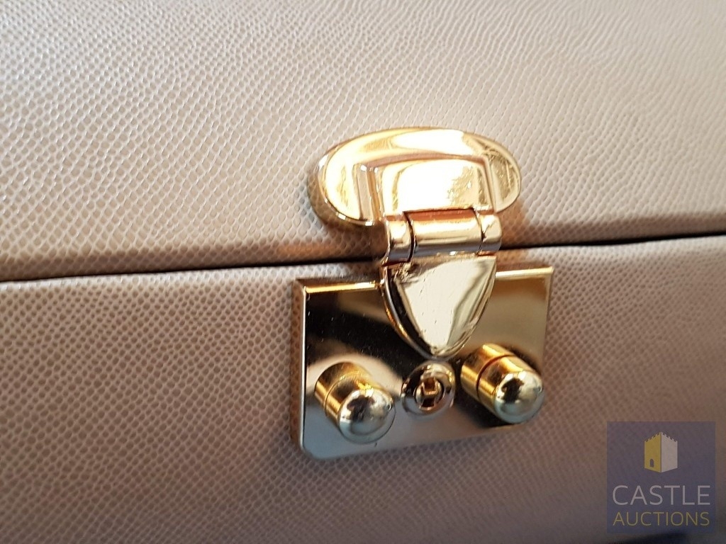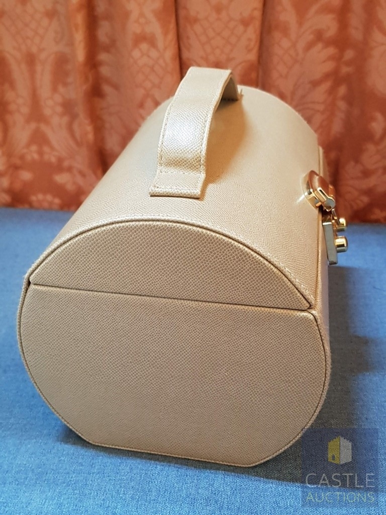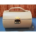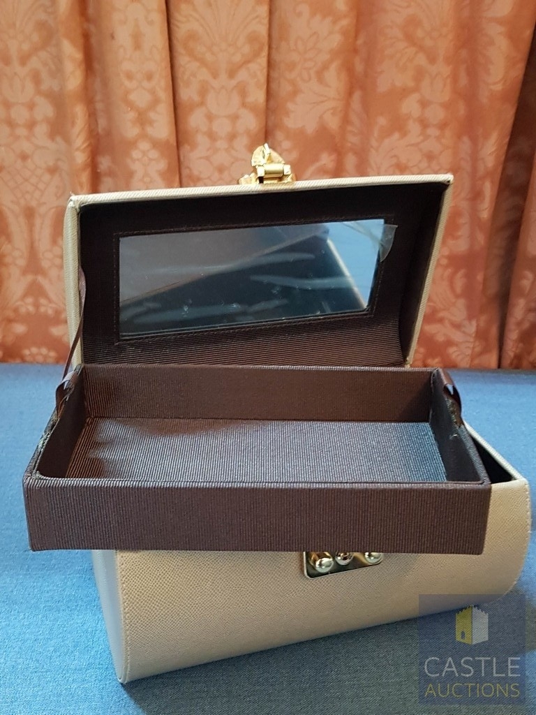 ESTEE LAUDER Elegant Beige Jewelry Box, Trunk Style with Gold Tone Hardware and One Tray (Approx. 16.5cm x 15.5cm x 23.5cm)