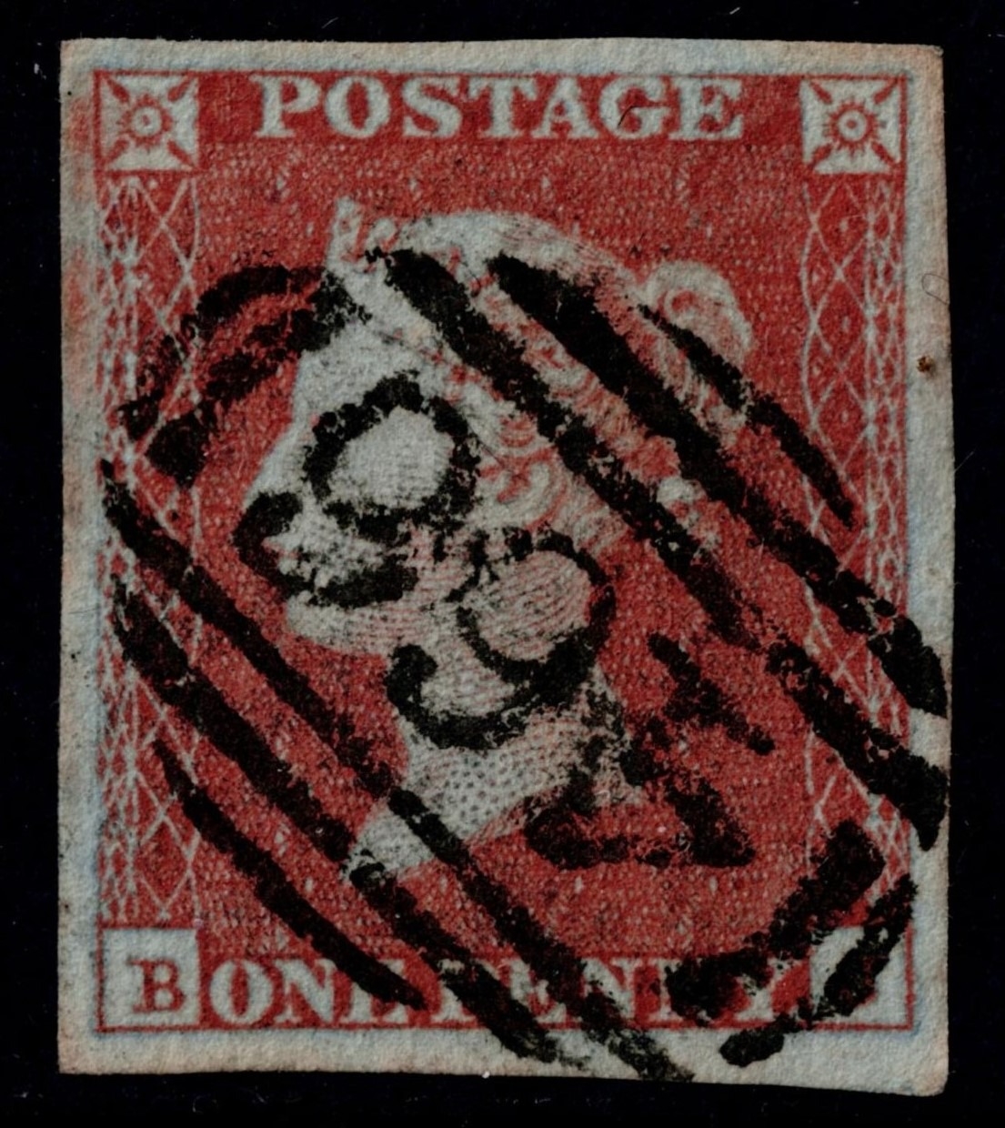 GB 1841 1d red plate 123 BJ superb used large margins variety burr rub over GE with crisp 466 of Liverpool sg8
