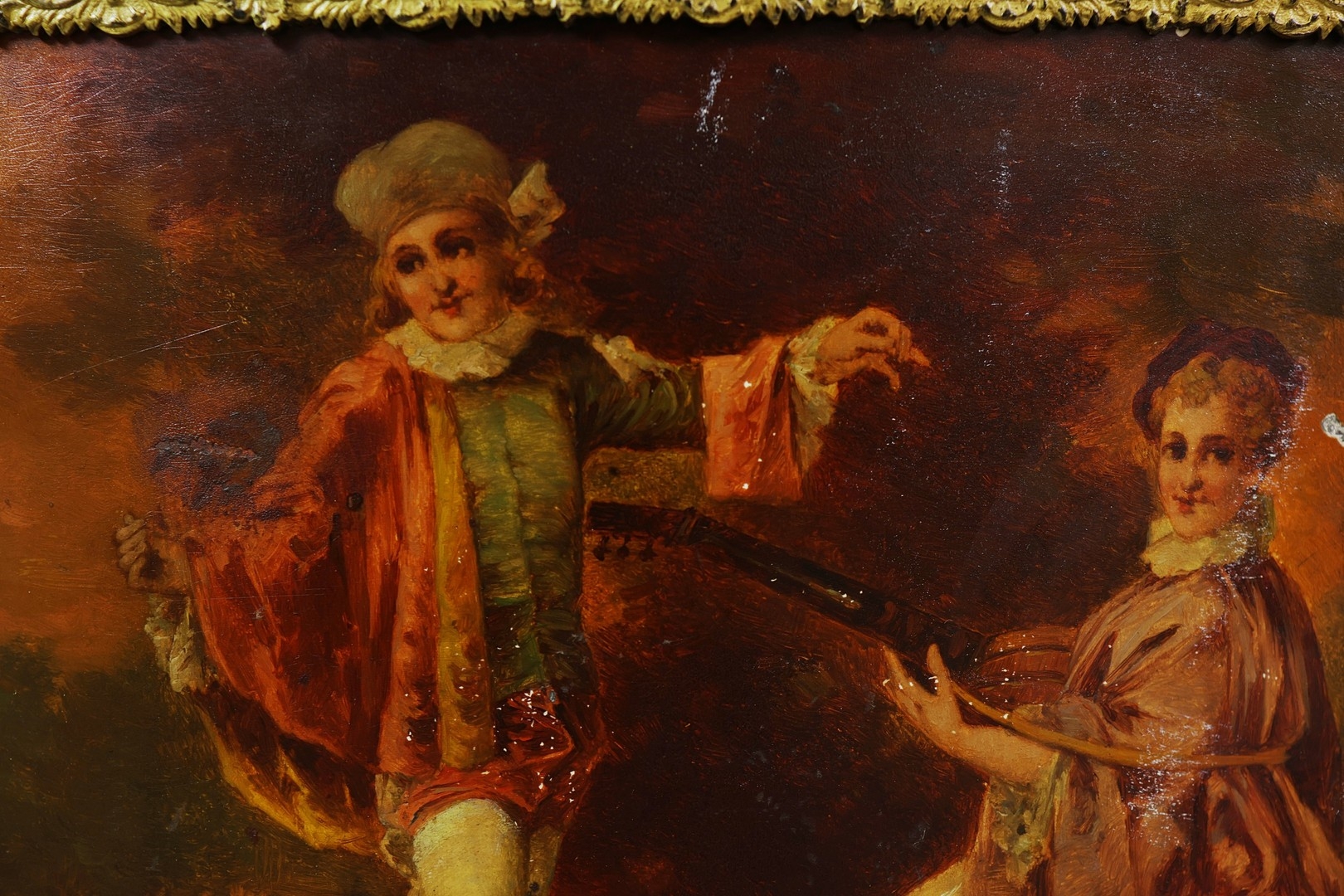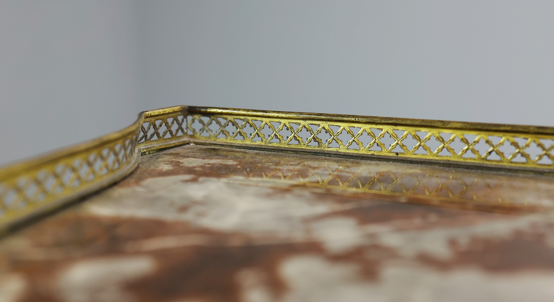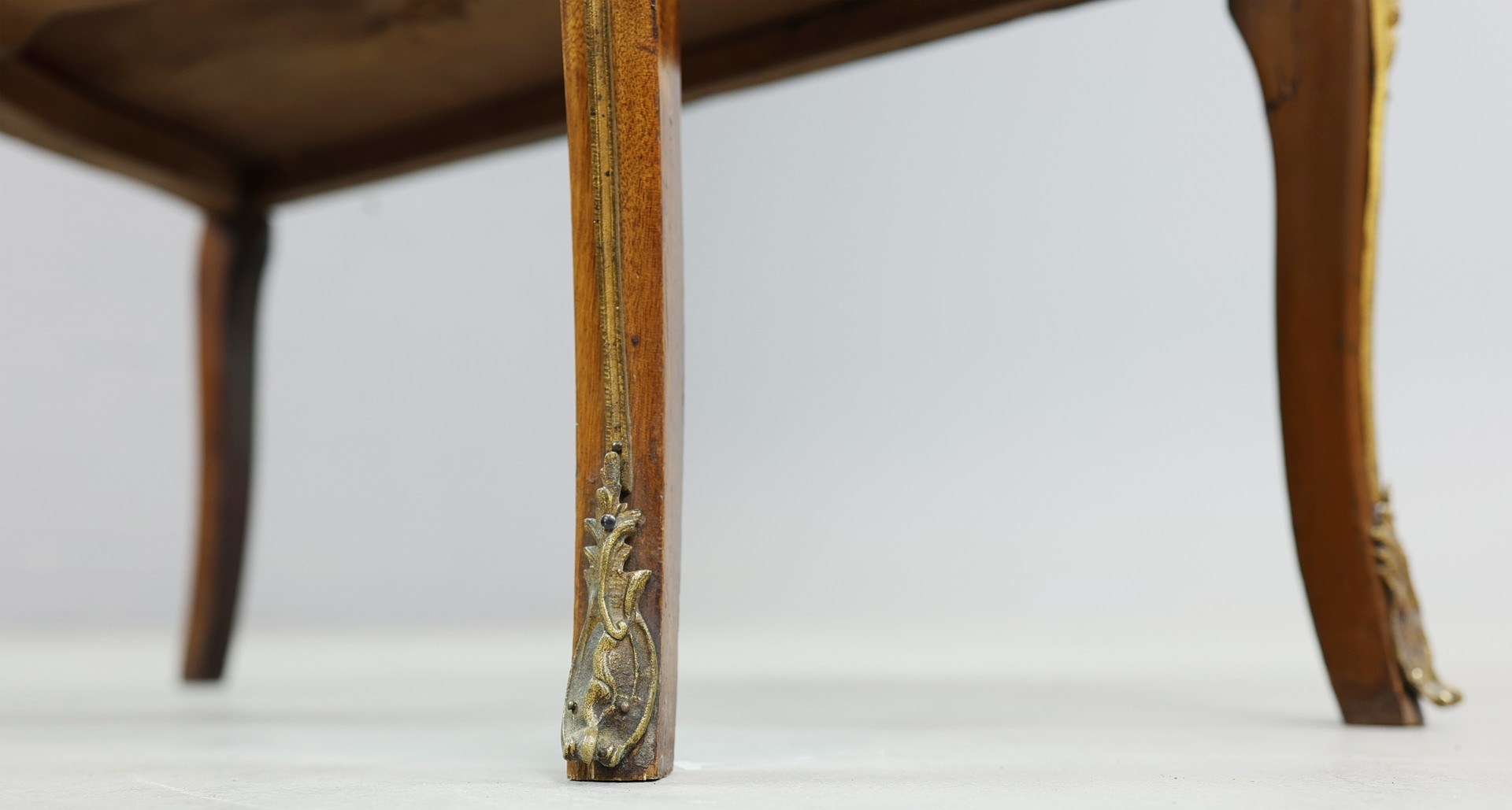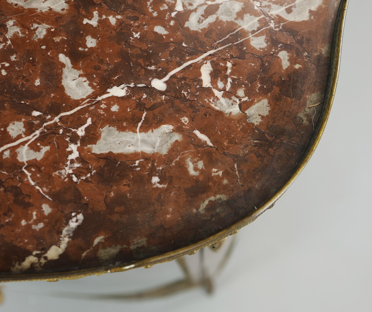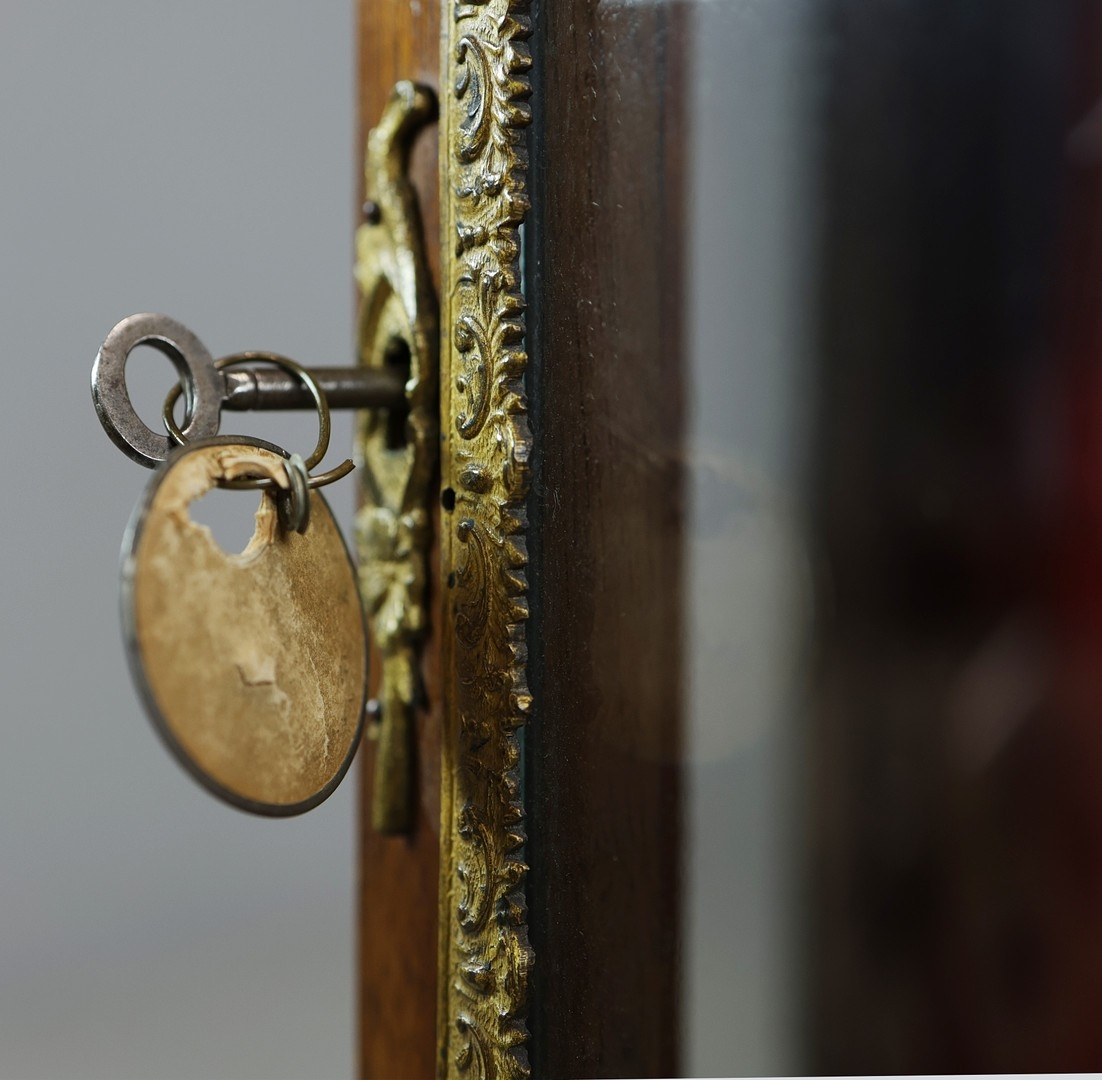 FRENCH MAHOGANY, PAINTED AND GILT METAL MOUNTED VITRINE. circa 1900, with marble top and bowed glazed door, 140cm H x 67cm W x 33cm D.