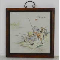 Two 19thC blue and white Spode plates, one decorated with a Grecian pattern, depicting Zeus' chariot and horses, surrounded by a border of classical figures and urns. 9 3/4'' diameter. The other depicting a rural scene, a woman filling a water jug with a village beyond, with a floral border. Approx. 10'' diameter. (2)