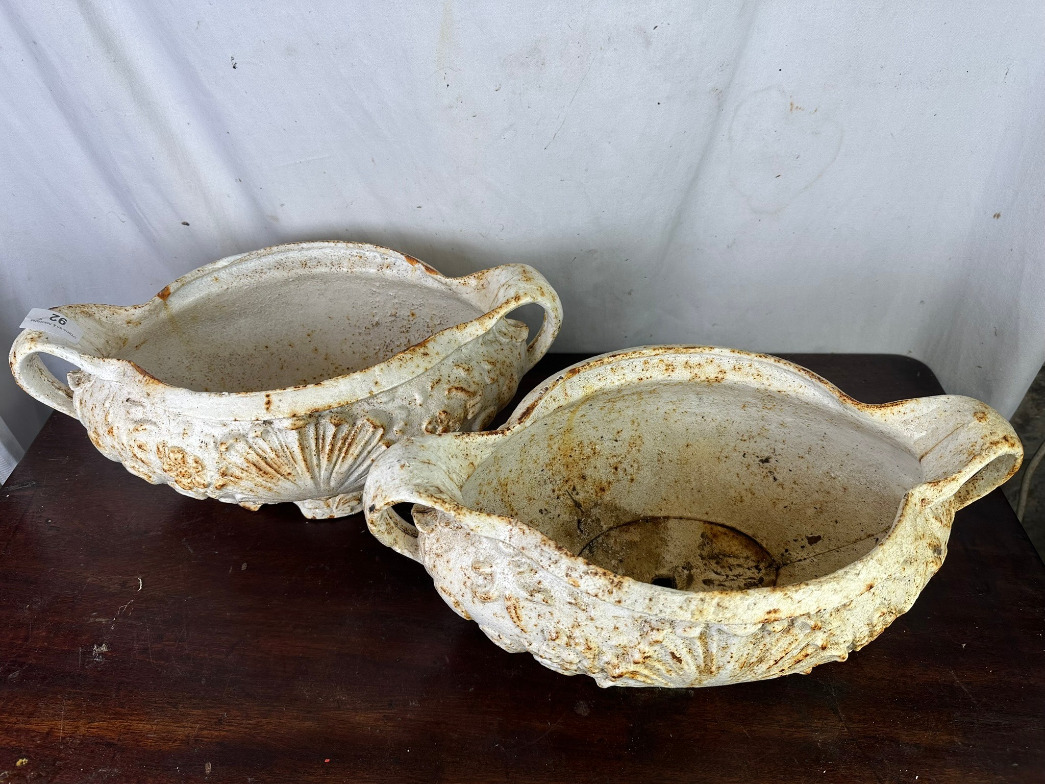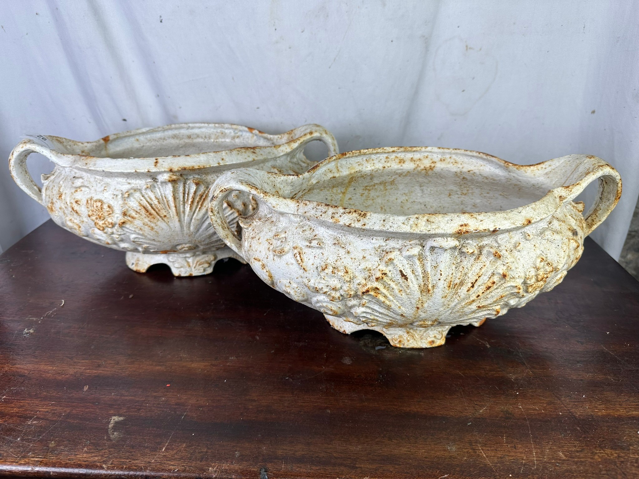 Matching pair of cast iron garden planters 39cms x 43cm l x 28cm d