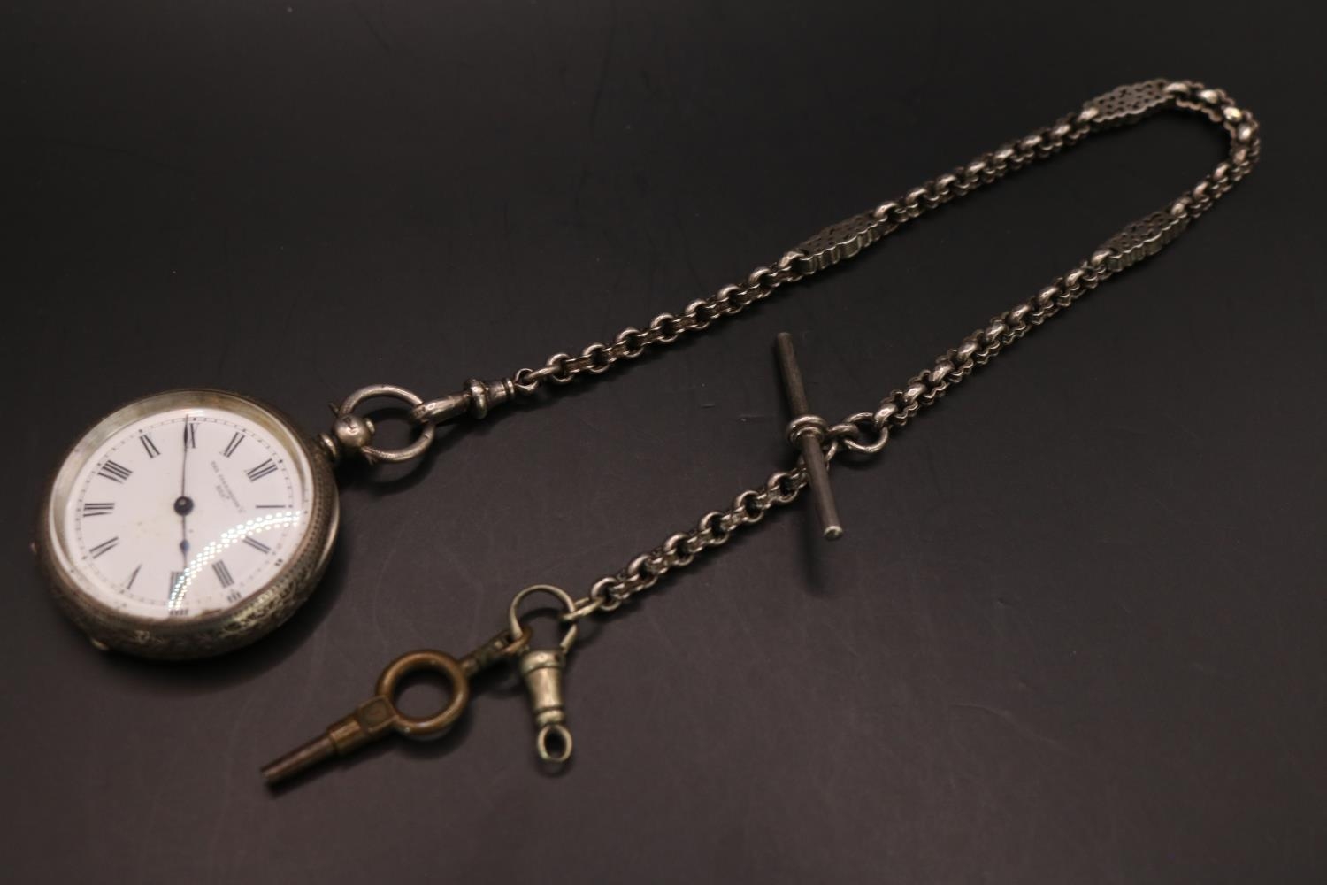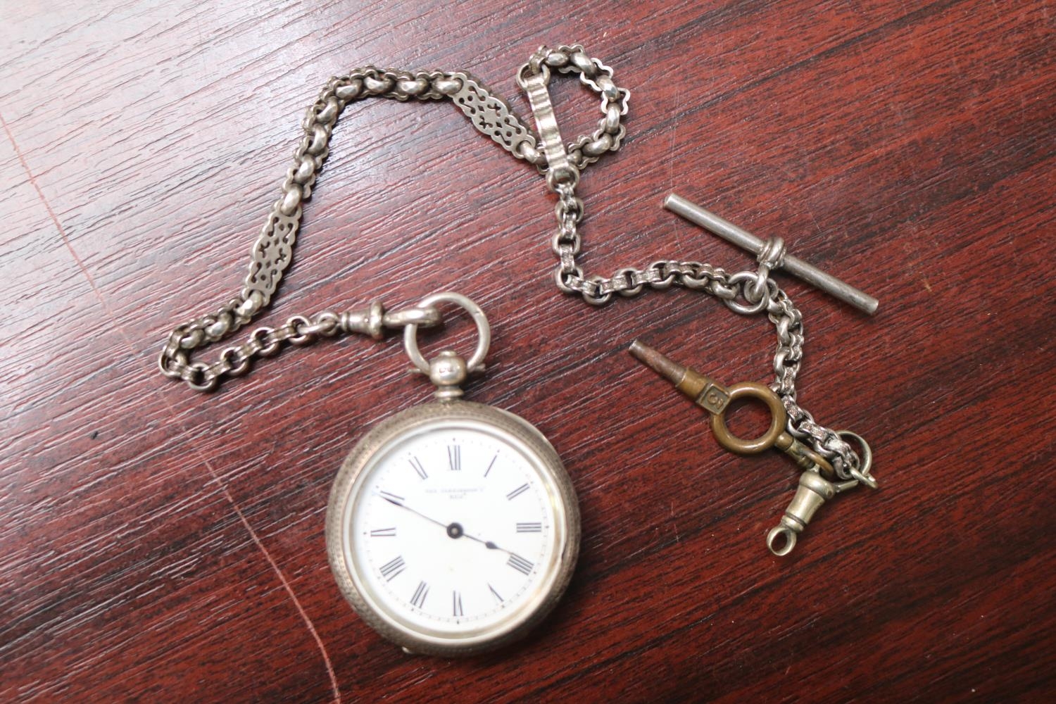 The Farringdon Silver Pocket watch with roman numeral dial and Silver watch chain