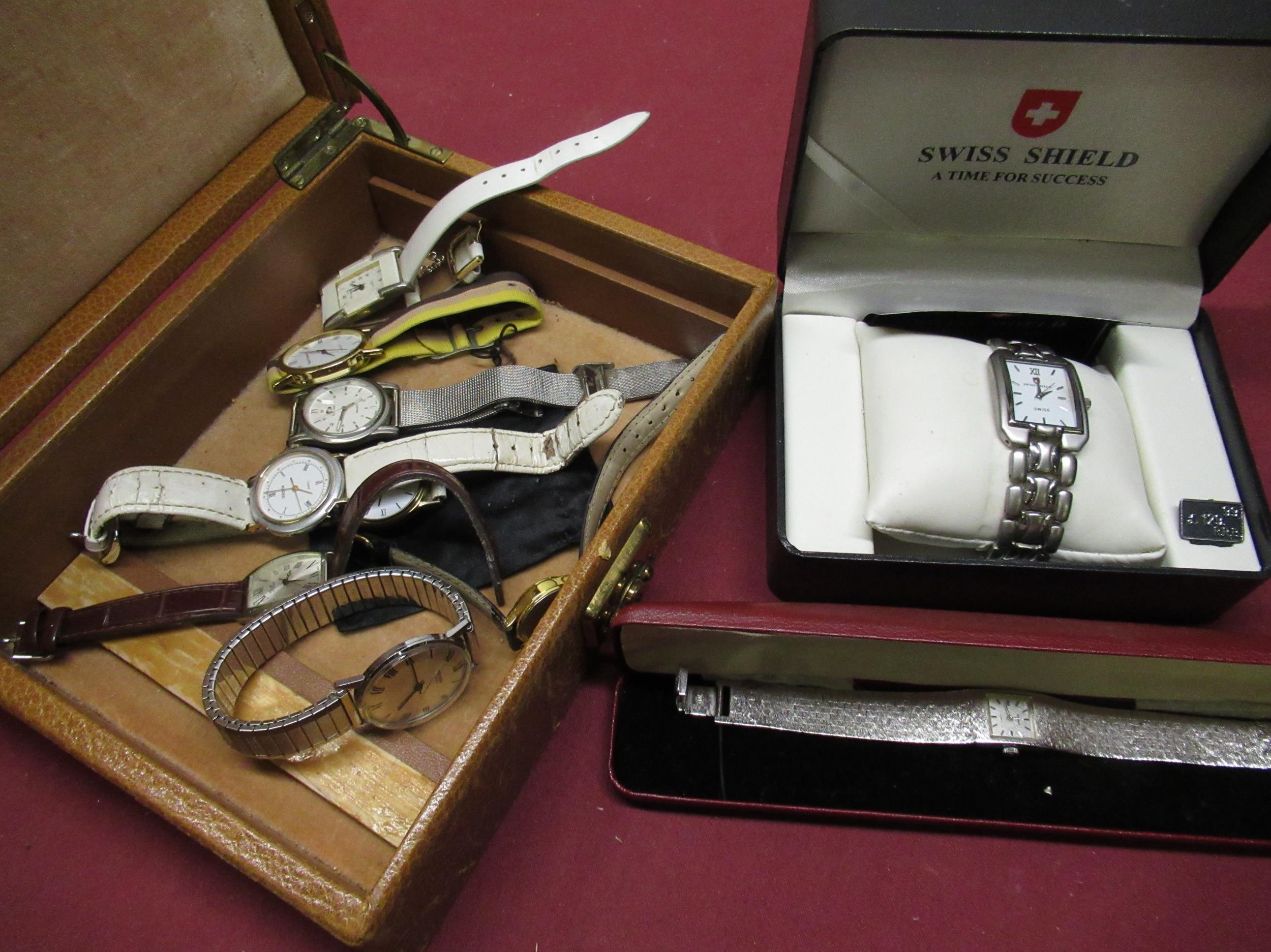 Swiss Shield quartz watch, stainless steel case on matching bracelet in original box, ladies Sekonda 17 jewel cocktail wrist watch, gents Sekonda 17 jewel wrist watch, Sekonda quartz wrist watch, various other quartz wrist watches