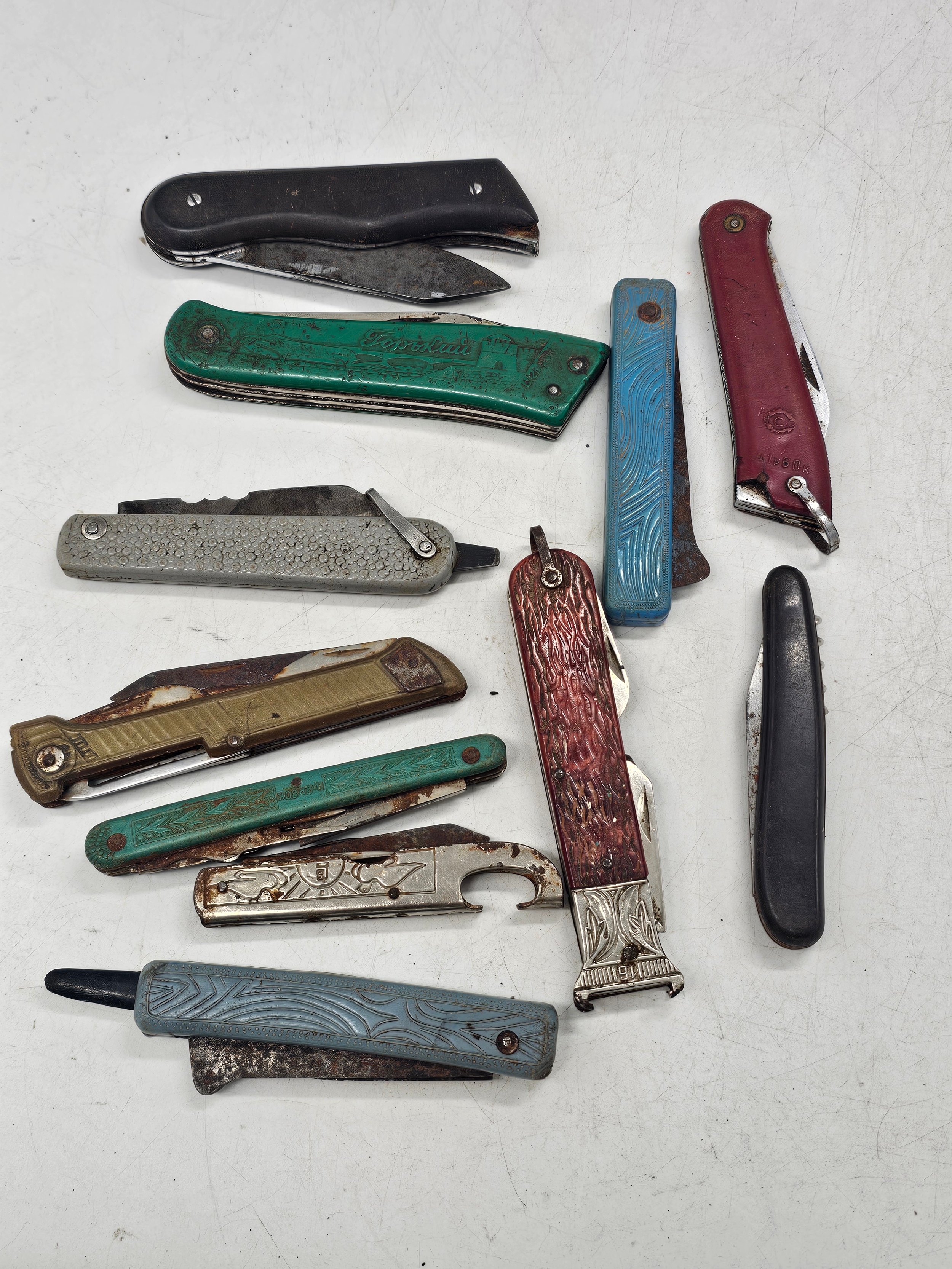 Vintage touristic and fisherman's penknives, mainly made in USSR