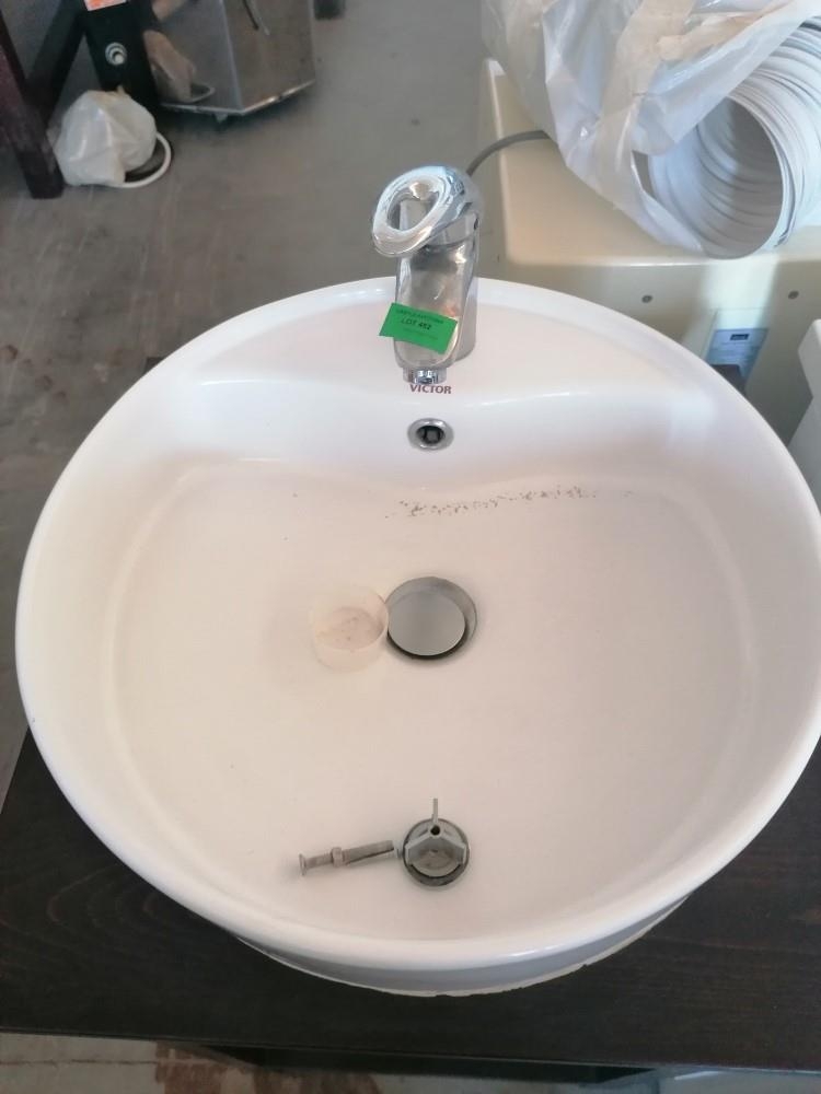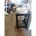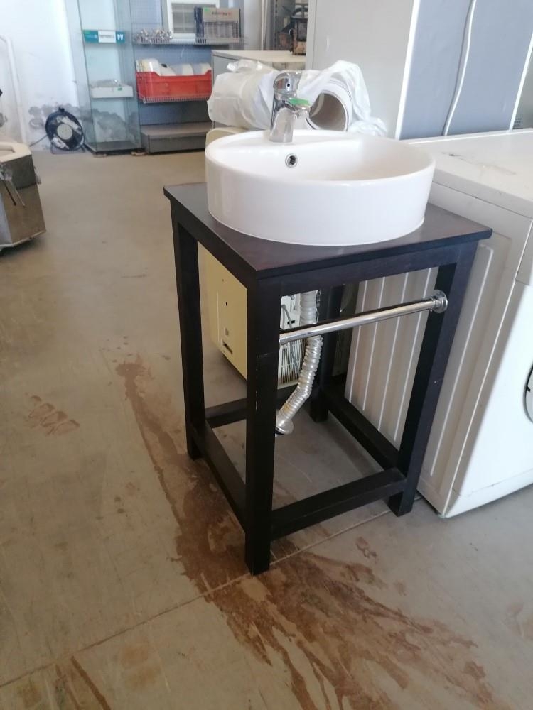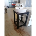 Modern Porcelain Round Single Sink with Wooden Base