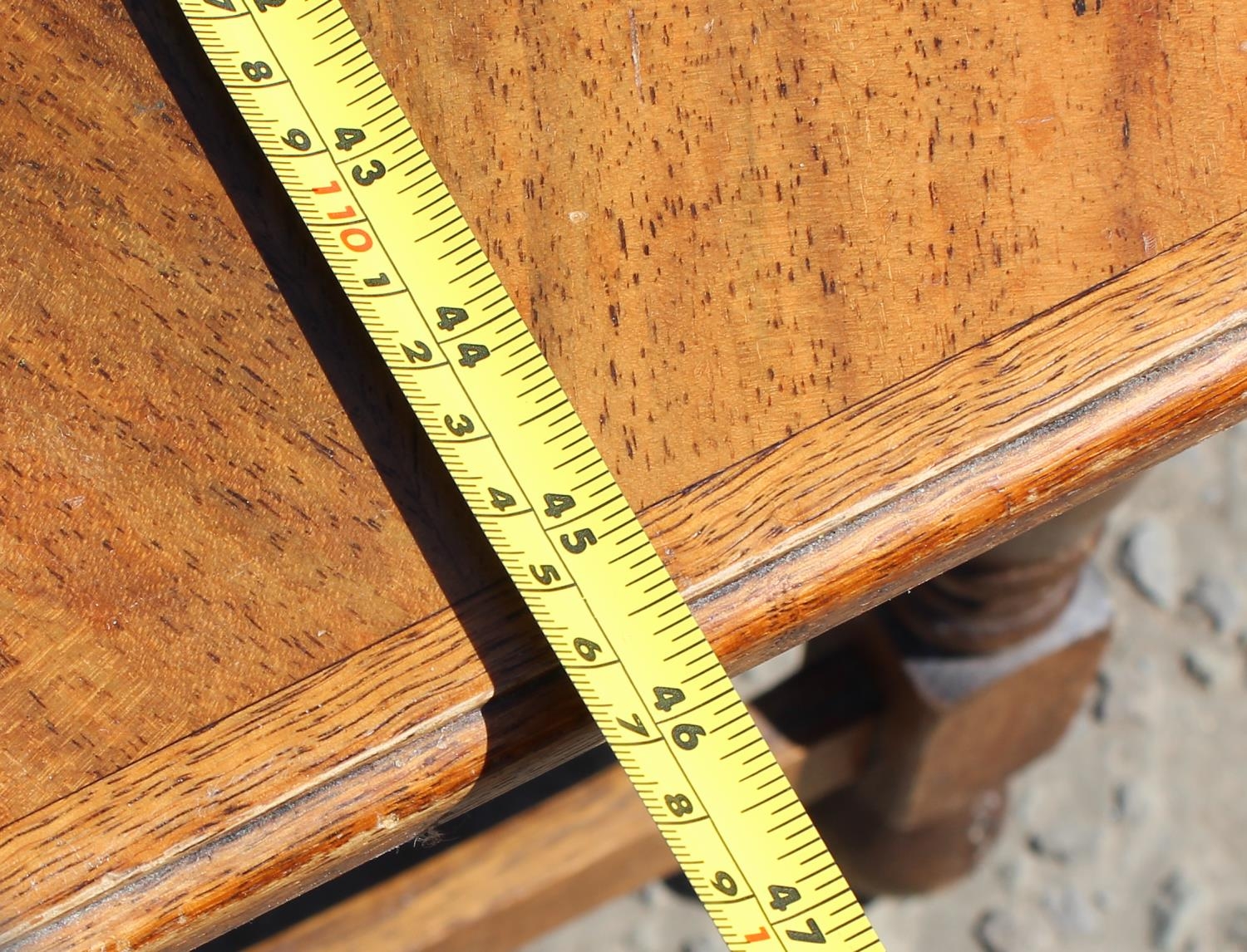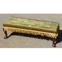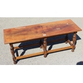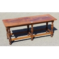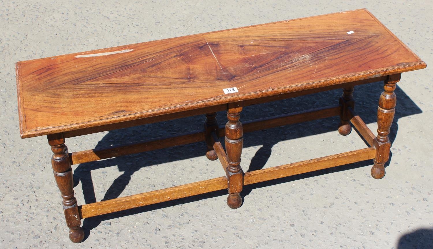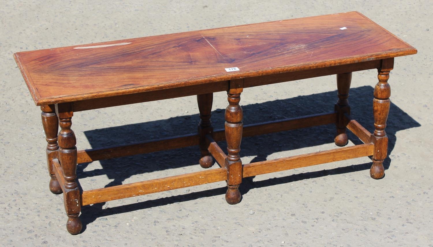An early 20th century 17th century style quarter cut oak stool or window seat on turned legs