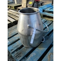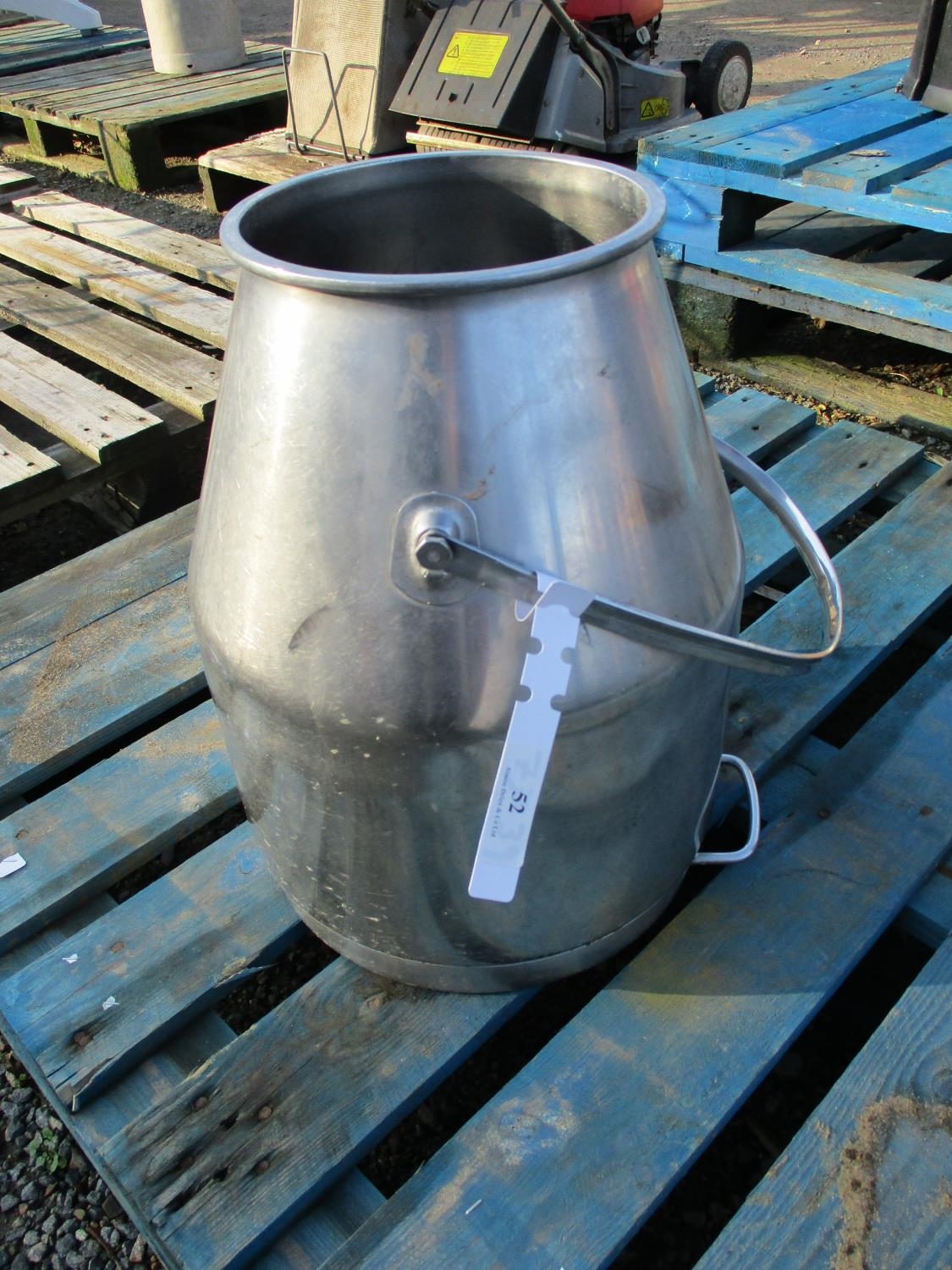 A stainless steel milk churn