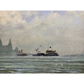 MARITIME: Ferry Interest 'The Last Journey', 'Claughton' and 'St. Hilary' ex- Royal Daffodil II departing the Mersey as 'dead' ships on route to the breakers, original oil painting dated August 1962, signed by Roy Stephens, 24ins x 27ins.