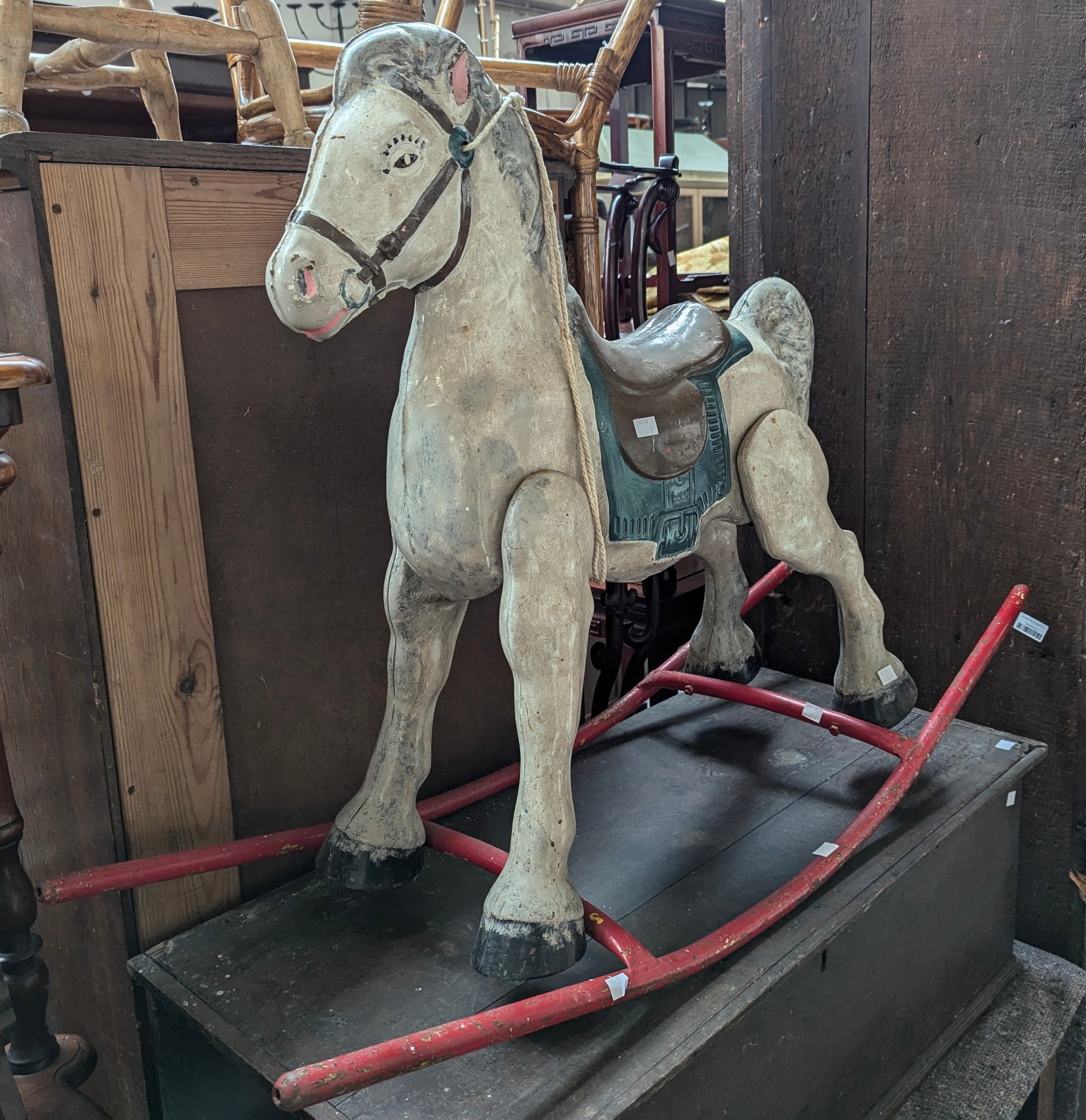 A painted metal rocking horse, 110cmL